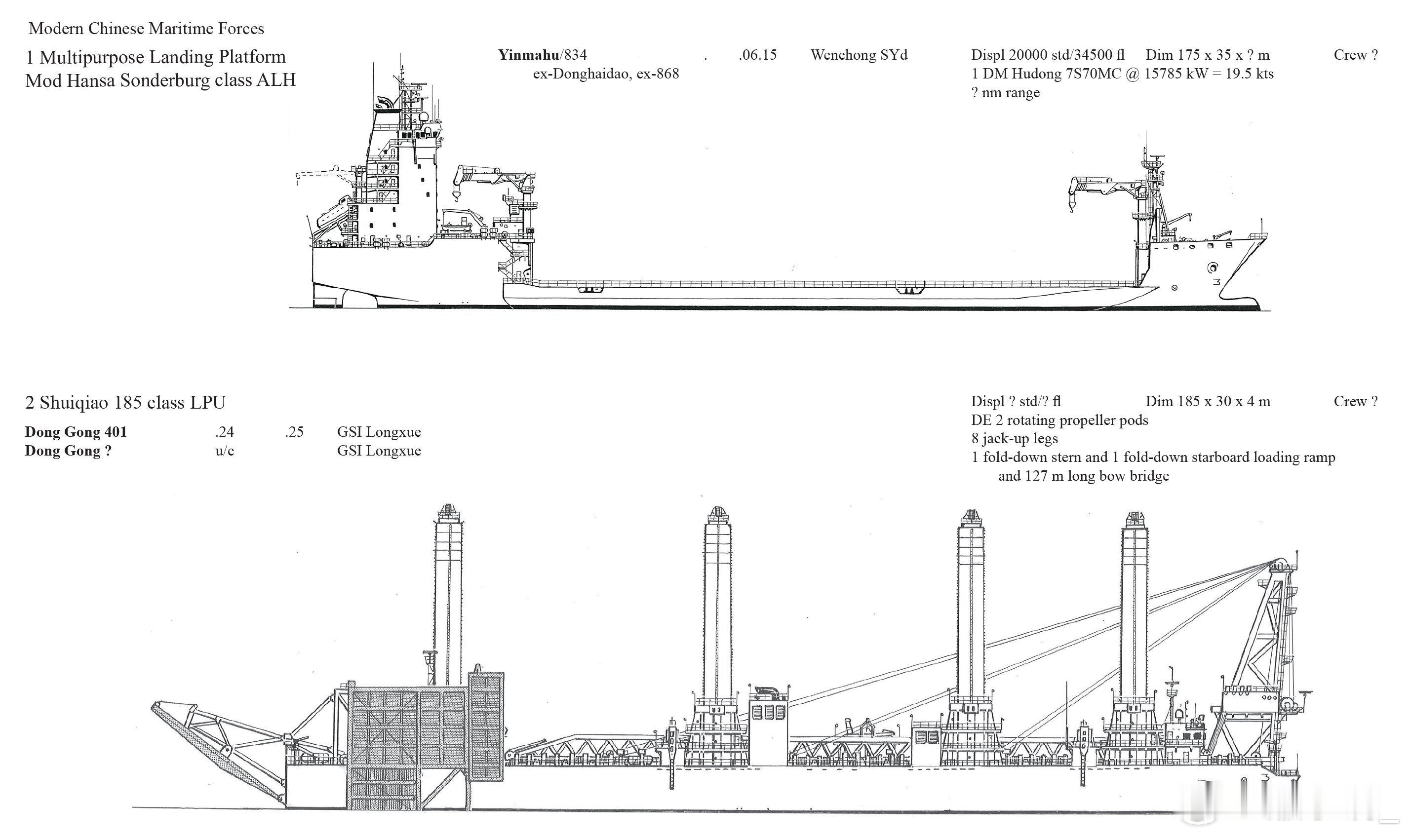 三款登陆驳船线图,包括834饮马湖船:
