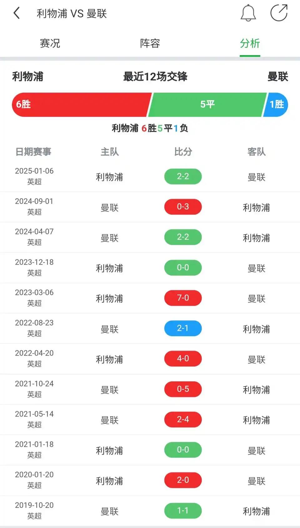 利物浦下一场比赛踢不过曼联,那就是克洛普时代以来最弱,直接掉出英超四强! 因为利物浦是曼联苦主,最近12场6胜5平1负,曼联最差的时候都能逼平红军。 这要是输了,我感觉斯洛特都有下课声音。 利物浦球迷想念克洛普的每一天。[可怜]