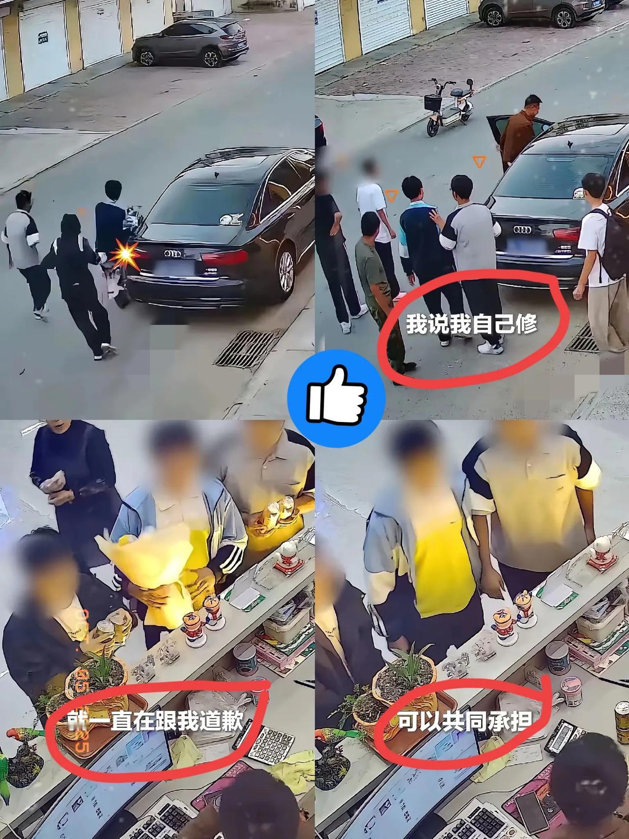 “这下好了,全国人民都知道了!”黑龙江哈尔滨几名中学生在路上嬉戏打闹刮了奥迪A6,没跑没赖,反而主动找车主认错,这波操作已经够圈粉了,更让人暖到的是——骑车刮车的就一个人,可所有小伙伴都陪着鞠躬道歉,还一起买了鲜花饮料赔不是! 车主没追责是善良,但这群孩子的“共担”才是真宝藏。现在多少人出了事先撇清关系,一句“跟我没关系”就划清界限,可这几个学生偏不,兄弟犯了错,大家一起扛,这份义气和责任感,比没刮花的车漆还亮! 其实这事哪是孩子幸运?是车主遇到了一群值得包容的少年,也是这群少年用真诚赢来了体谅。要是换成遇事就躲的人,再通情达理的车主,恐怕也难有好态度! 你身边见过这么有担当的年轻人吗?要是你遇到这种事,会像这些学生一样主动认错,还是会犹豫呢?