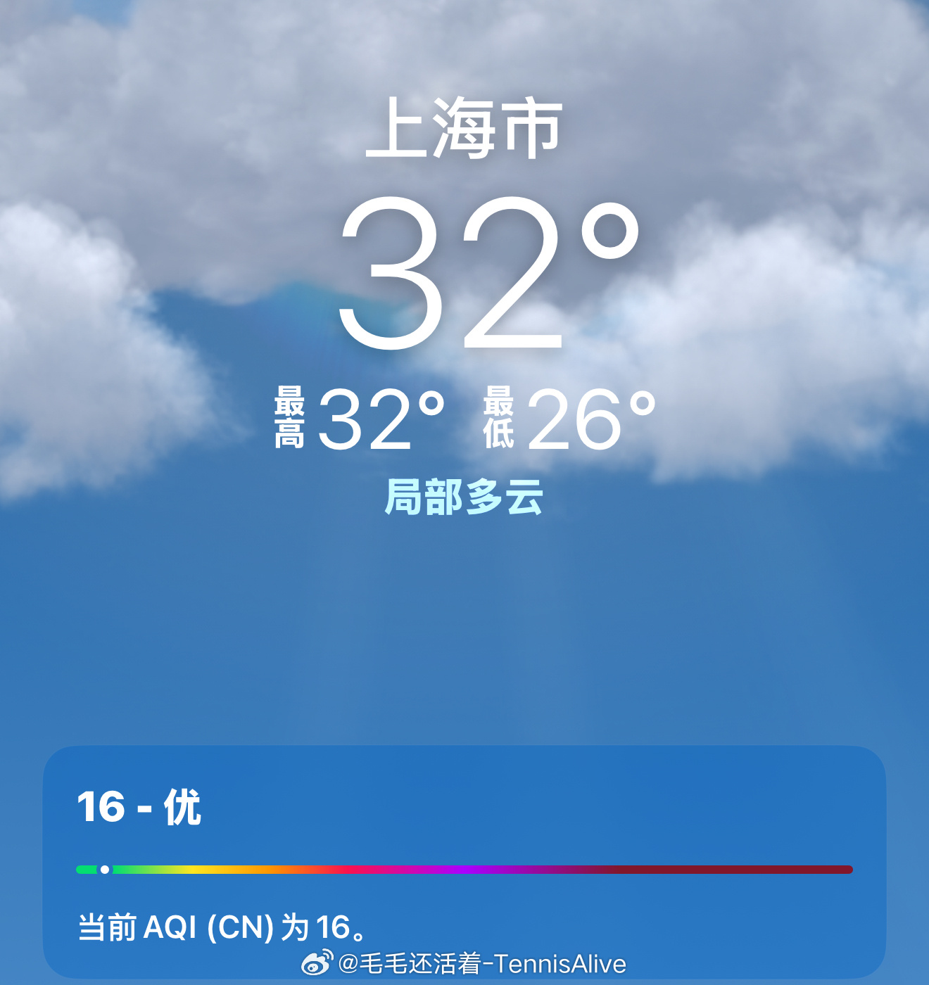 林德科内西打进了上海第三轮。上海最近的天气确实非常热。但是我查了一下,上海的空气污染指数非常低,完全优质。当然有的时候大城市都会有空气污染,这是大部分国家都会的。我觉得还是不要对中国有一些刻板印象。因为现在的中国的各大城市的空气已经非常好了。