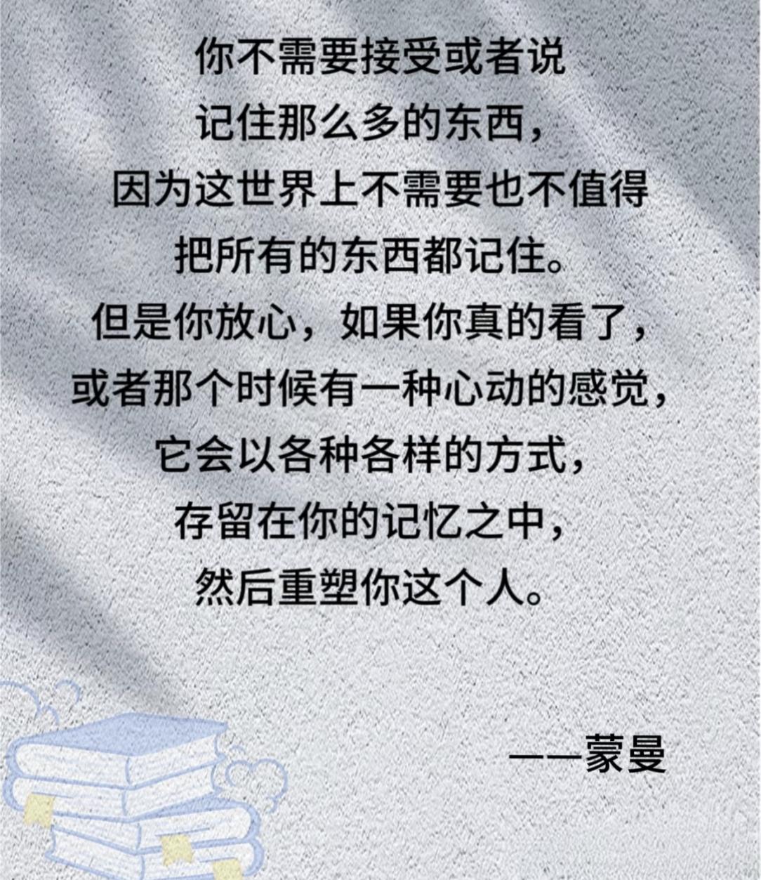 读书的意义不在于记住,而在于是否理解并优化自我思维,意义在于活学活用,这就是知行合一。 一个人打出生就接收各种各样的信息,当他能够阅读的时候,就开始接收书面信息,但这些并不一定不构成记忆或者知识。 根据遗忘曲线,如果不在特定时间对信息进行复盘,我们很快就会忘记。 如此一来,除非人有过目不忘的本领,很多看过的书被忘记是一种必然。 这并不代表我们读的这些书没有任何效果。 作为成年人所读的书一般分为两种:功利性阅读和非功利性阅读。 功利性阅读主要针对专业、管理类的书籍,一般看了就能马上用到。有时候你就是为了解决现实难题才被迫“营业”。 比如我在工作上碰到棘手的事情,除了请教有经验的同事,更多时候是通过翻阅专业书籍,查找解决对策,并举一反三形成套路。所以这类书是为我解决如何活在当下的问题。 非功利性阅读主要是文、经、哲、政、史这五类书籍。这些书对你不会立即有效,但始终有用。 如果你从“我读了这本书,但总感觉没用上”的角度出发,只能说明你的阅读观很狭隘。 真正的阅读从来不局限于“用”这单一维度。 比如,文学有助于你培养专注力和情绪管理能力;不仅可供你消遣,更能深化你对生命本质的理解。 经济学有助于你掌握经济规律,建立理性思维模型;提升个人优质决策能力。 哲学有助于培养深度思考、分析能力,塑造并完善个人的思维方式、价值观及人格; 政治学有助于提高对社会现象的认知能力,能够站在更高的角度去有逻辑的思考问题; 历史有助于让你更明智地鉴古知今,当你读懂了兴衰,眼界和格局自然得以提升。 而这些我们读过的书,很多都是无法一一记住的,但它们会存在心里,让你说话有道理,做事有余地,出言有尺度,嬉闹有分寸。这便是“腹有诗书气自华”。就如杜甫在《春夜喜雨》中写到:“随风潜入夜,润物细无声”。 最后以一段的读书感悟作为结束:“当我还是个孩子时,我吃了很多的食物,大部分已经一去不复返而且被我忘掉了,但可以肯定的是,它们中的一部分已经长成我的骨头和肉。阅读对你的思想的改变也是如此。” ------------------------------------- 点个赞+小评一下,愿人生的旅途从容洒脱,不慌不忙; 关注我+收藏一下,愿岁月的长河浅笑安然,细水长流。 秋日生活打卡季 万能生活指南