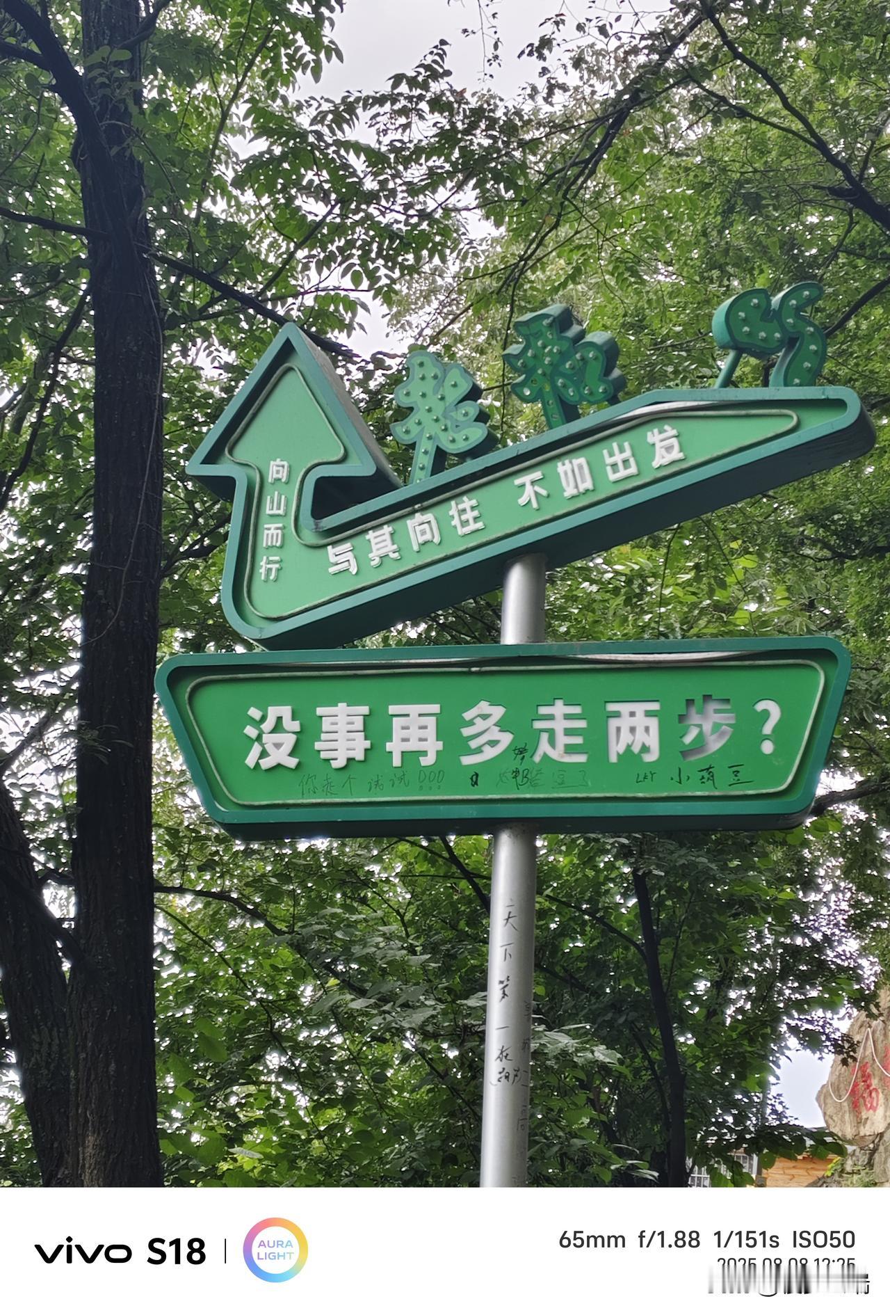 老君山:在山林间与向往撞个满怀 老君山的美,藏在每一次向山而行的脚步里。当你步入这片绿意盎然的天地,那抹醒目的绿色路牌仿佛是山林的邀约——“与其向往,不如出发”,短短数字,道尽对远方与风景的热忱。 山间林木葱郁,每一片叶子都在微风里轻晃,像是在为行人加油鼓劲。另一个路牌带着几分俏皮的“没事再多走两步?”,像是山林的小玩笑,却也恰是老君山的温柔劝诫,劝你别错过沿途的松鼠跃枝、野花绽放,别辜负这满目的清翠与清新的山风。 在这里,每一步都是与自然的对话。你可以在林间小道上慢慢走,看阳光透过树叶缝隙洒下的光斑在地面跳跃,听鸟儿在枝头唱出清脆的乐章。或许还会偶遇山间的溪流,潺潺水声为这趟山行更添了几分灵动。 老君山的魅力,就在于它用最质朴的方式,邀请每一个向往自然的人亲身出发,在走两步、再走两步的过程中,把向往变成眼前的实景,把旅途变成一段充满惊喜的修行。