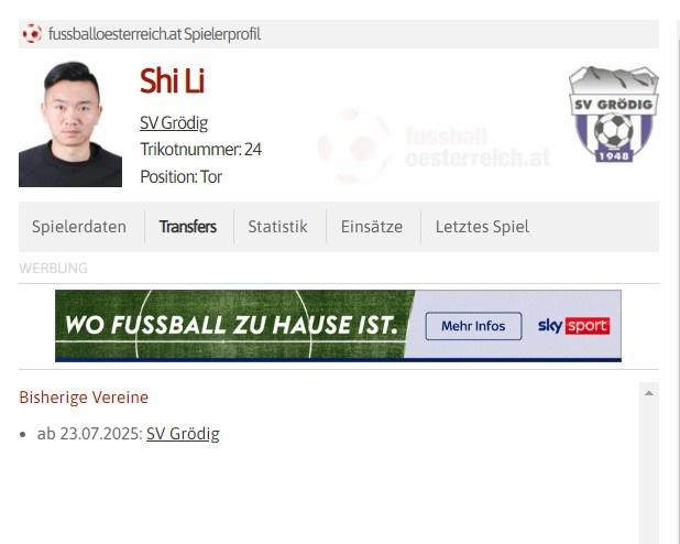 直播吧10月5日讯据媒体人“Patrick海外君”透露,前成都蓉城门将李实加盟奥地利第4级别联赛俱乐部SV格勒迪希。