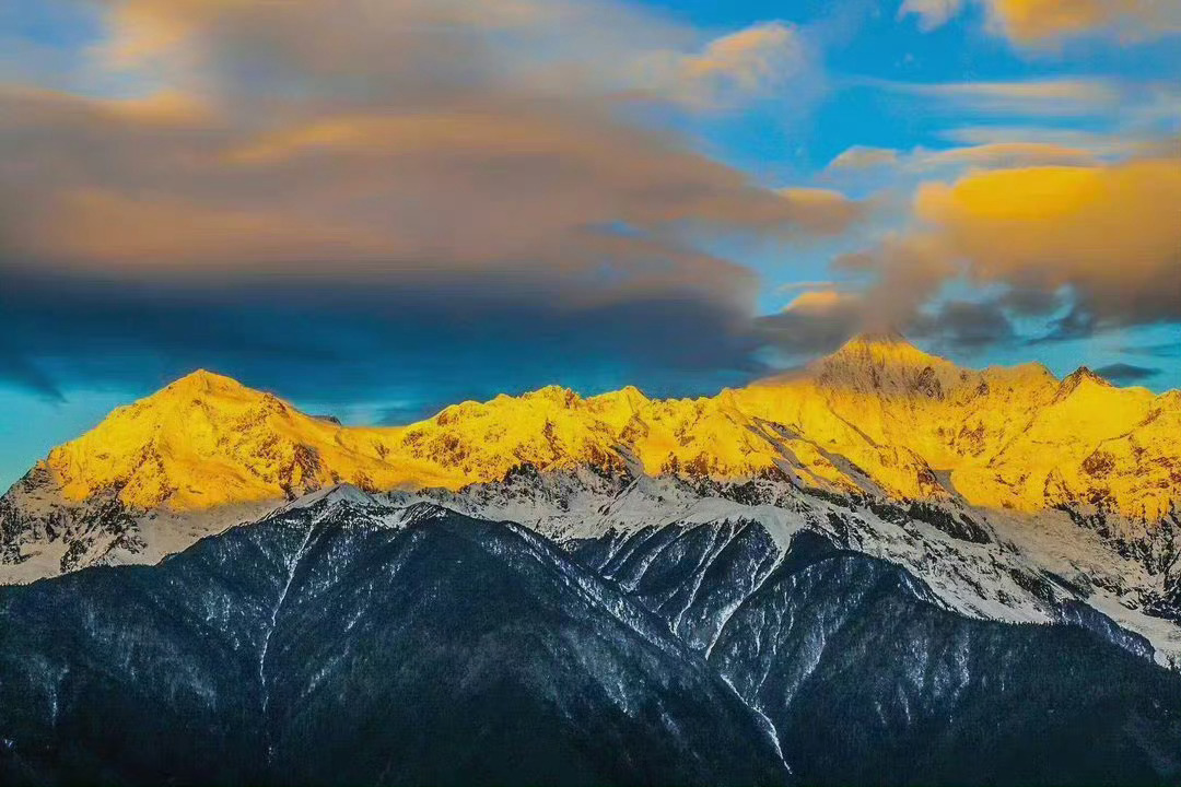 当阳光洒满 梅里雪山,再现绝美日照金山。