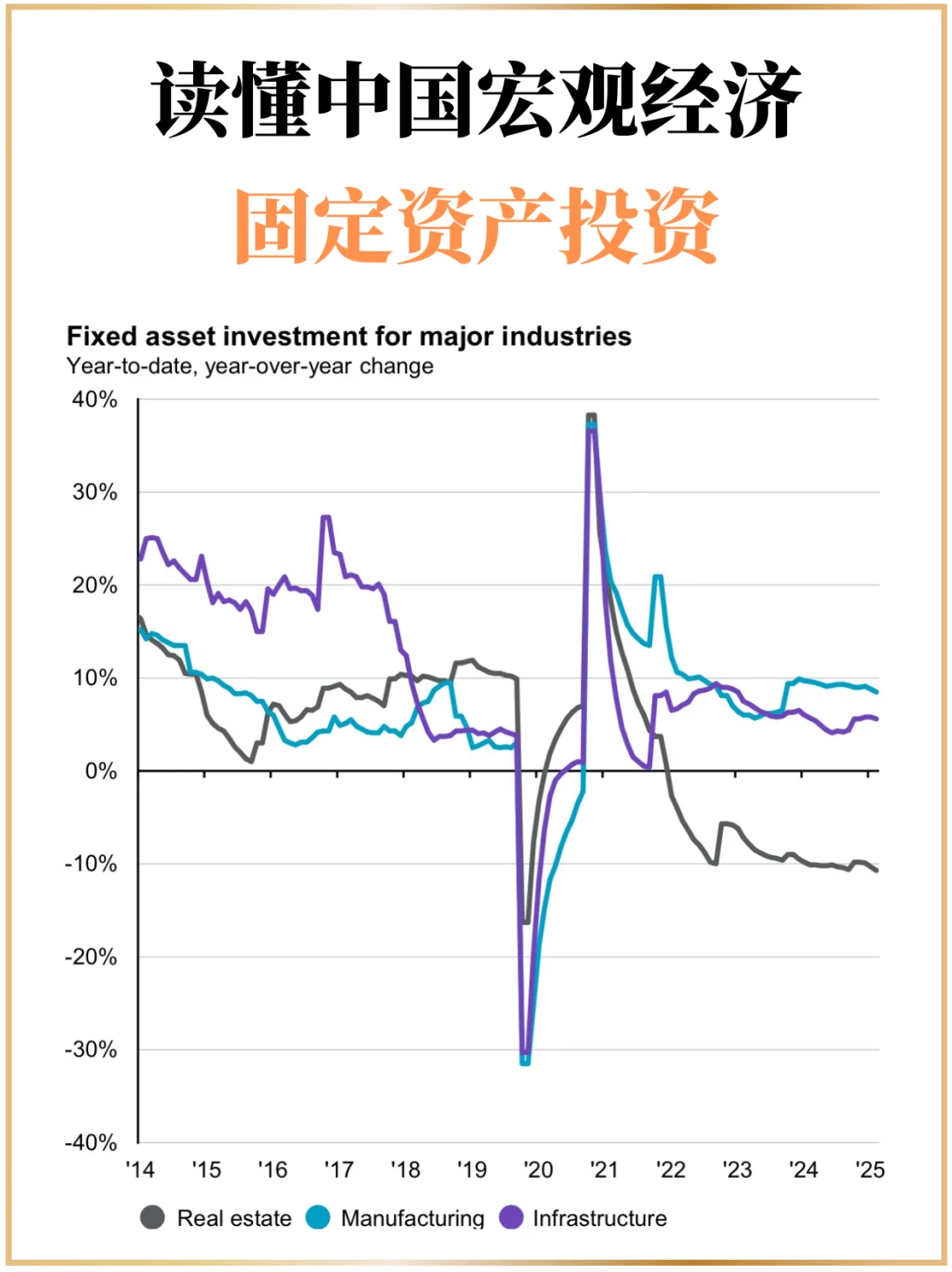 GDP增速、消费/投资/净出口对GDP的拉动、消费者信心指数、零售销售额及细分品类增速、不同所有制和行业的固定资产投资增速、房地产开工/销售面积及价格同比、库存月数、CPI(整体及核心)、PPI、政府债券发行进度、关键利率、信贷脉冲…