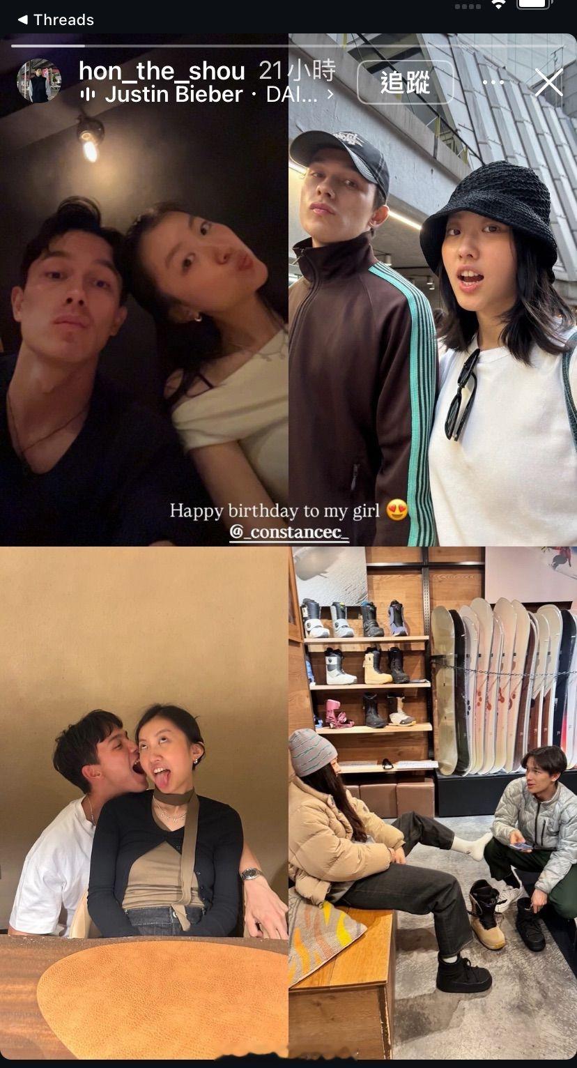 陈奕迅和徐濠萦女儿陈康堤今年6月以新人姿态闯乐坛,先后推出首支主打歌《doll》及广东歌《一律建议分手》,备受瞩目。昨天(4日)是康堤的21岁生日,她和混血男友Shou Honda感情稳定,男友还在IG限时动态贴出两人亲昵合照放闪。照片中他们摆出搞笑表情,男友还留言示爱:"Happy birthday to my girl(生日快乐,我的女孩)。"