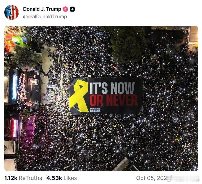 特朗普连发两张特拉维夫集会要求释放以色列人质的照片。