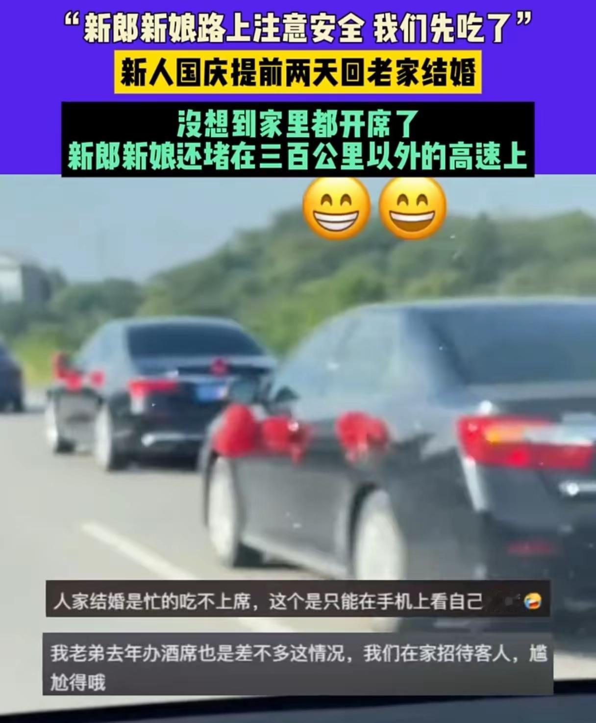 笑死了,江西一对新人结婚时被困高速,让家人先吃饭,网友评论超有意思 结婚时见过新