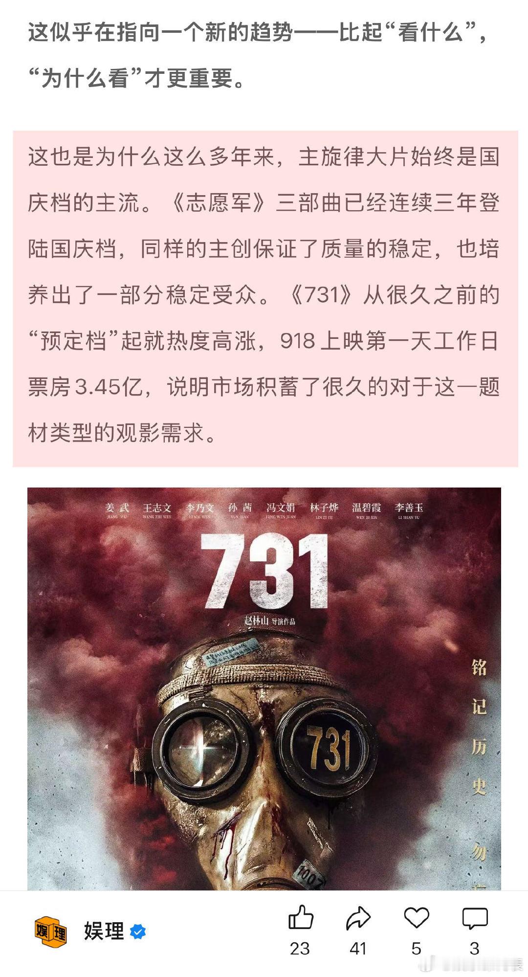 国庆档最大的新鲜感是新面孔主旋律大片始终是国庆档的主流《震耳欲聋》在发行资源