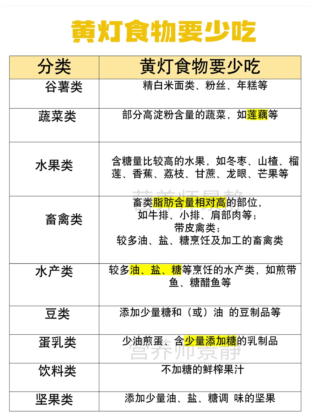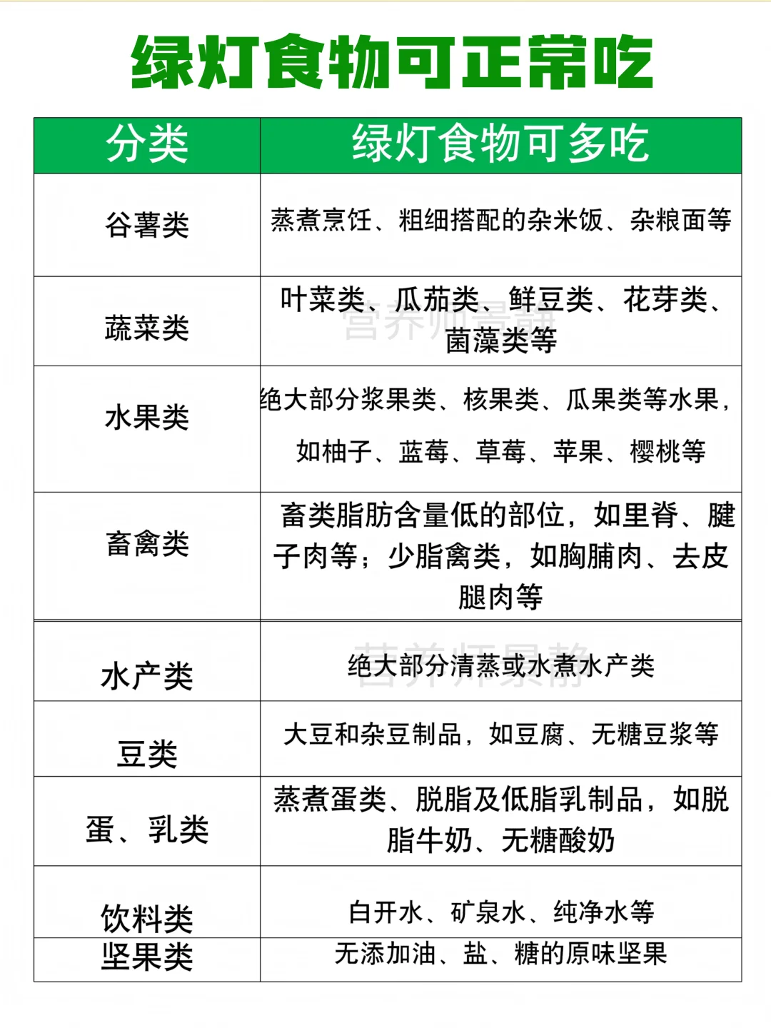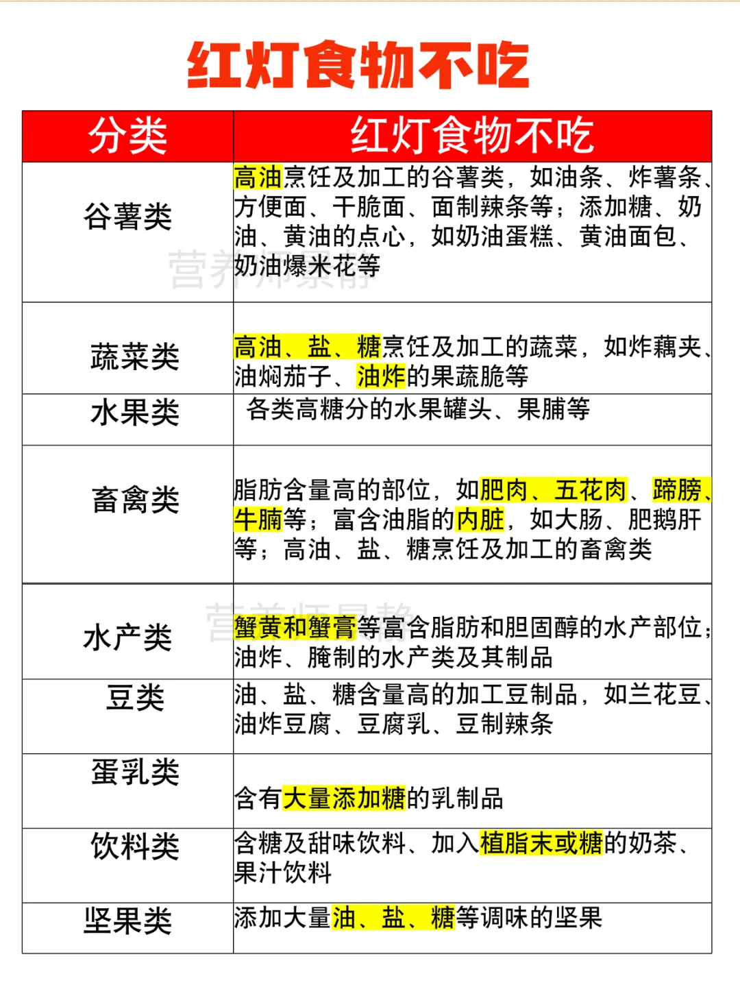 见图:红绿灯食物表