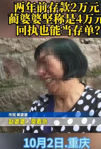 重庆,一大妈去银行将2万活期改成三年定期,想贴补卧病老伴家用。办完业务拿回执单回