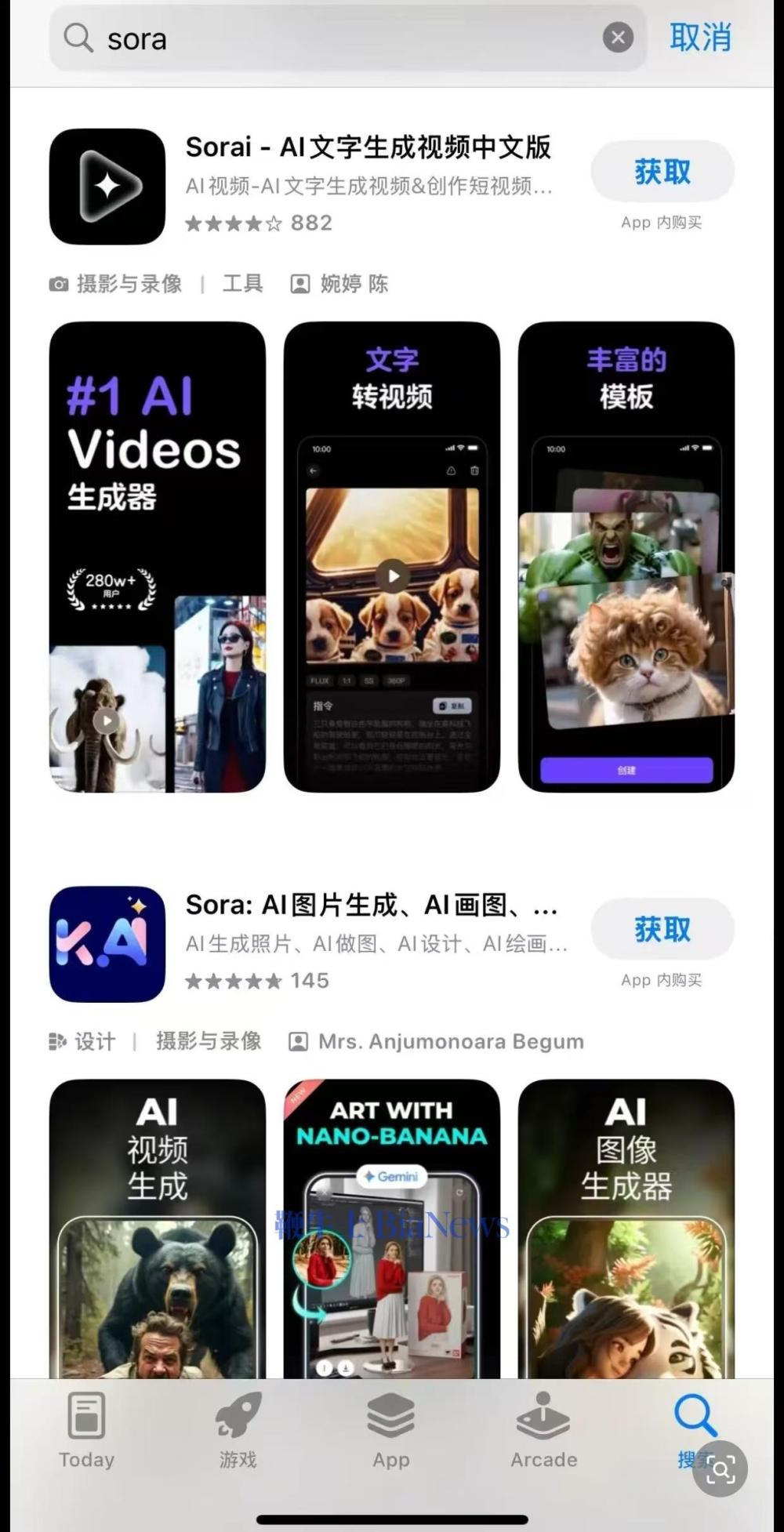 苹果AppStore虽规定不得发布误导性或侵权应用,但审核系统显然跟不上AI克隆的速度。StartupNews.fyi指出,在多个地区,搜索“Sora”几乎都能出现十余个仿冒应用,有的甚至收费高于正版。