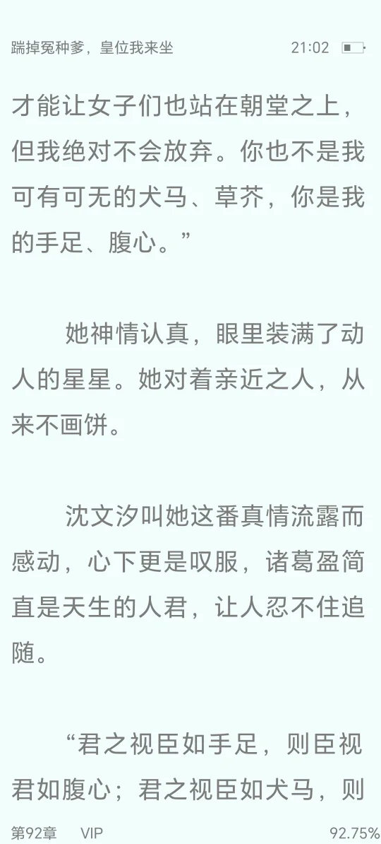 不错!! 这段君臣之间问答我现在还是超级喜欢! 就是女君,就是女官!!就是她们想要的! 她们是对方可以互相倚赖的情同姐妹,是手足腹心[皱眉R][皱眉R] 这本女帝文我真的超爱!