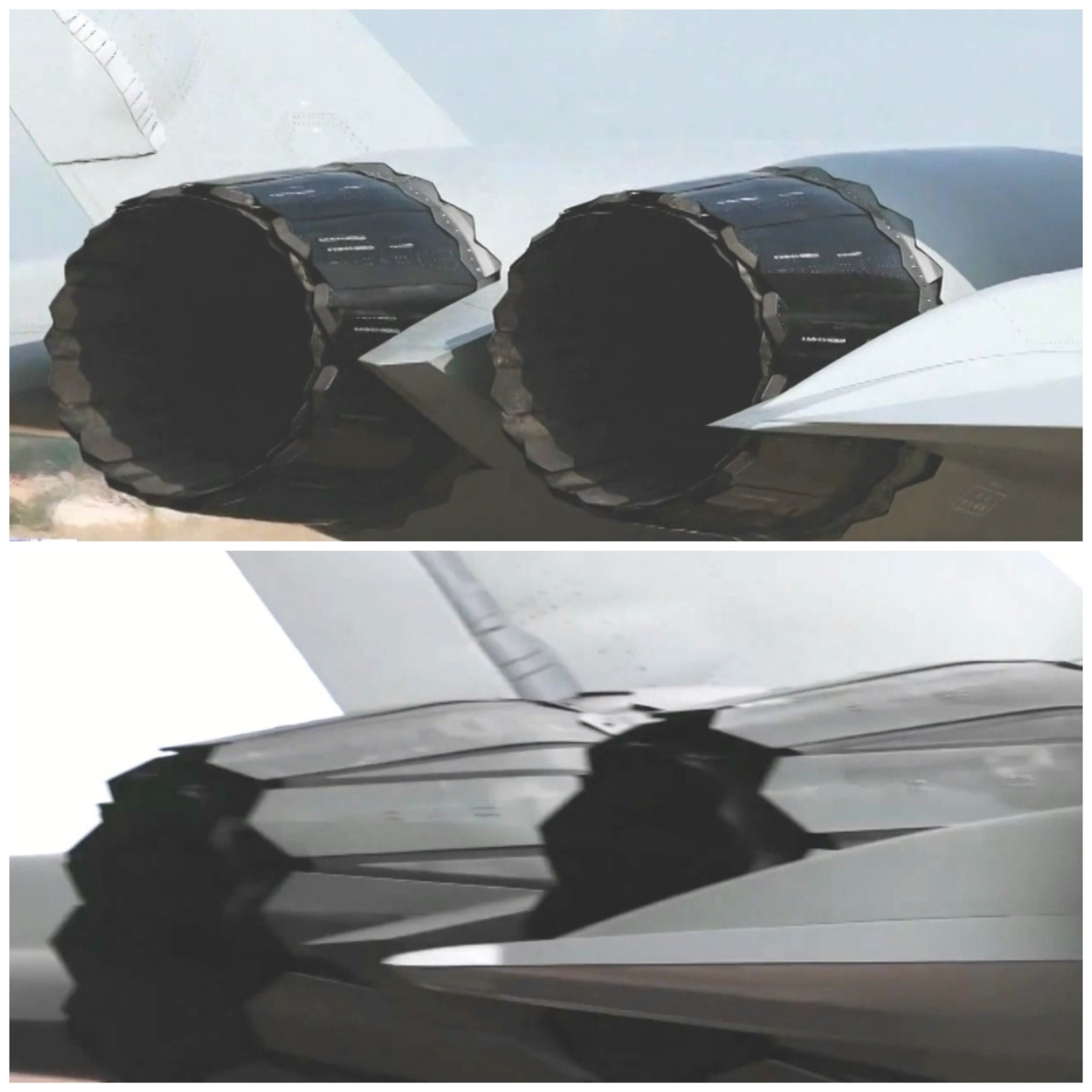 烽火问鼎计划战鹰解码随手做了个歼35系列发动机喷口对比图,区别还是挺大的。(上面是歼35A的,下面是歼35的)