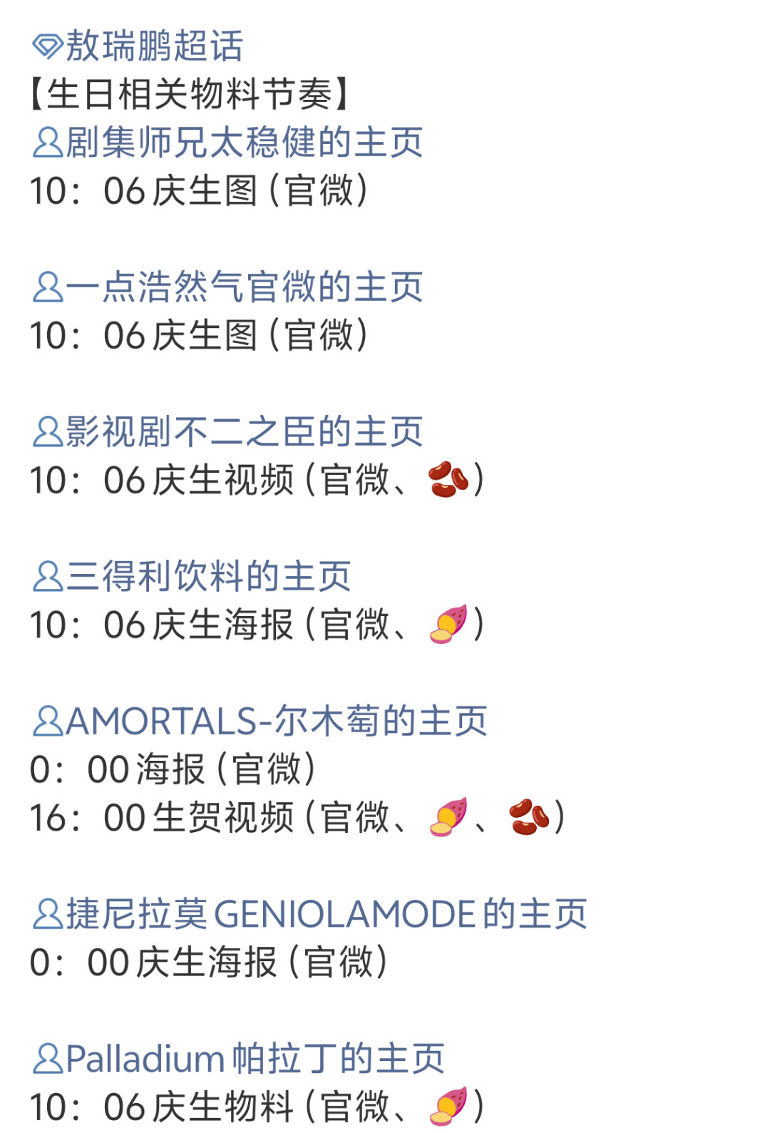 敖瑞鹏明天生日,三部剧四个代言都是卡点,有卡0点的有卡生日点1006的,啊啊啊对