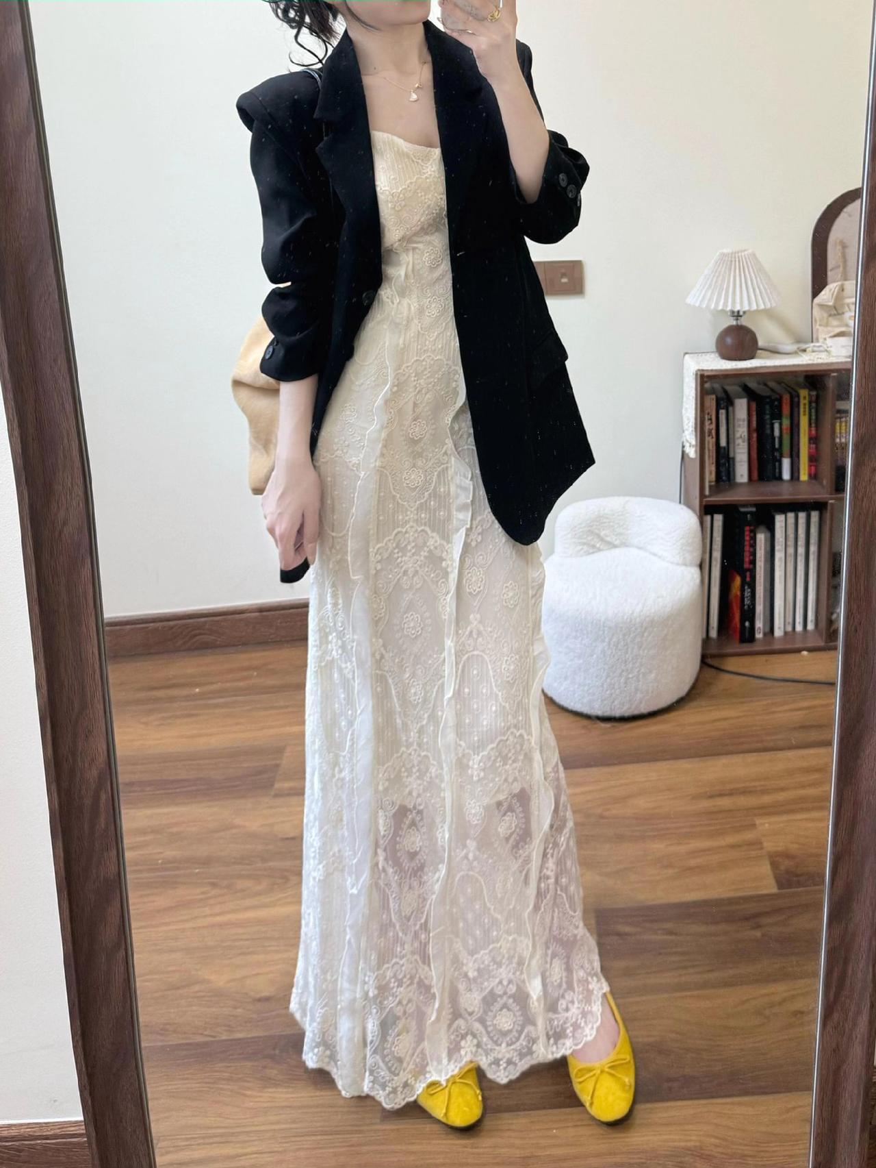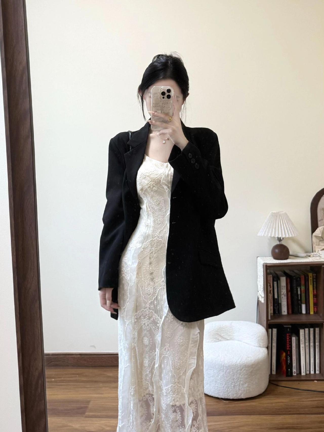 2025夏季韩系穿搭套装太赞啦!黑色西装外套搭配性感吊带连衣裙,韩系风格超迷人。面料舒适,剪裁精致,让你轻松成为时尚焦点!