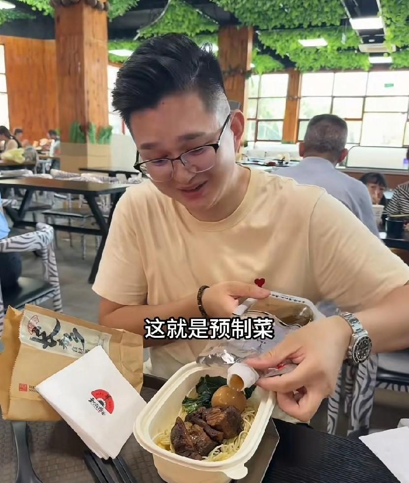 国庆假期,一名男子旅游用餐时碰到了预制菜,不过他并未像罗永浩那样生气,西贝餐厅真该学学这家饭馆的做法了。 这究竟是怎么回事?说起来也简单。男子旅游途中,下高速后找了家餐厅吃饭。端上来的炖菜明显是预制菜,但男子非但没生气,反而乐呵呵的。吃完后,他评价说味道还不错,预制菜口感挺好。 他为何不像罗永浩那样生气呢?难道罗永浩就高人一等,不吃预制菜就高人一等,吃预制菜就低人一等? 其实,这种差异的原因其中之一是期望不同。罗永浩花高价想吃现炒新鲜的菜品,而这位男子旅游时就想花了十几二十块吃了顿快餐,填饱肚子。 而且,最重要的区别并非价格,而是这家饭馆提前告知男子是预制菜,还把预制菜的包装一同拿了上来,让男子看得清清楚楚,没有丝毫隐瞒。 是什么就是什么,是预制菜就直说,是现炒就表明。预制菜就收二十块,现炒菜收一两百、三百,这就是差距。 所以我认为,西贝该看看人家餐厅,人家公开透明、价格公道,顾客有知情权,谁会吃得不舒心、生你的气呢? 西贝做法不地道,没有厨师,搞个预制菜,用开水煮一下就装盘,还按高价收费。虽然有人觉得没问题,但多数人心里还是会不舒服。 这并非消费者小心眼,而是看不惯这种做法。预制菜本身没错,错的是商家的做法。 大家觉得呢? 你愿意用上百元、几百元吃预制菜吗?欢迎说说。