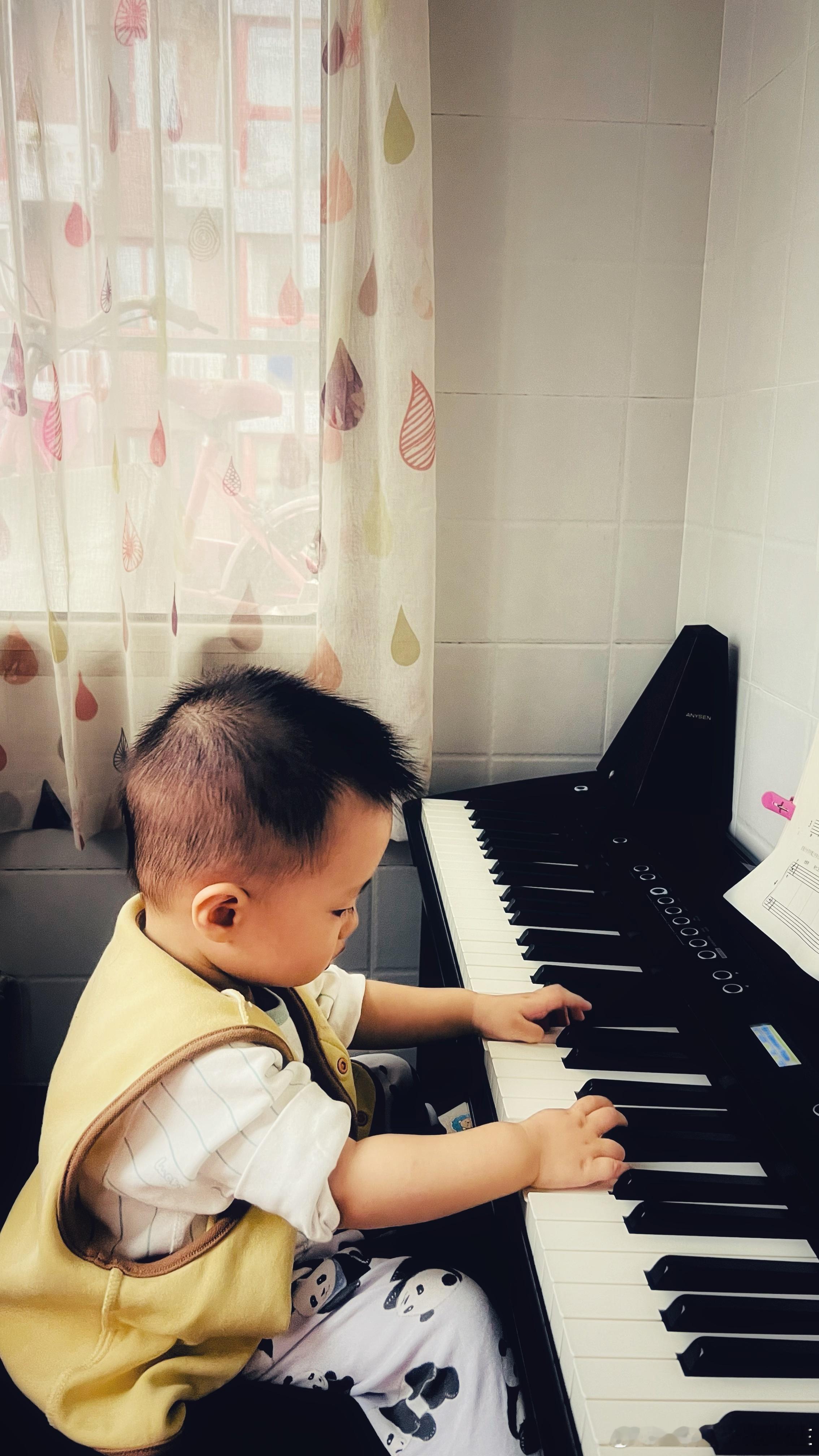 一个人弹了好久!有点天赋!节拍器一开!小眼珠子咕噜咕噜的[嘻嘻][嘻嘻]