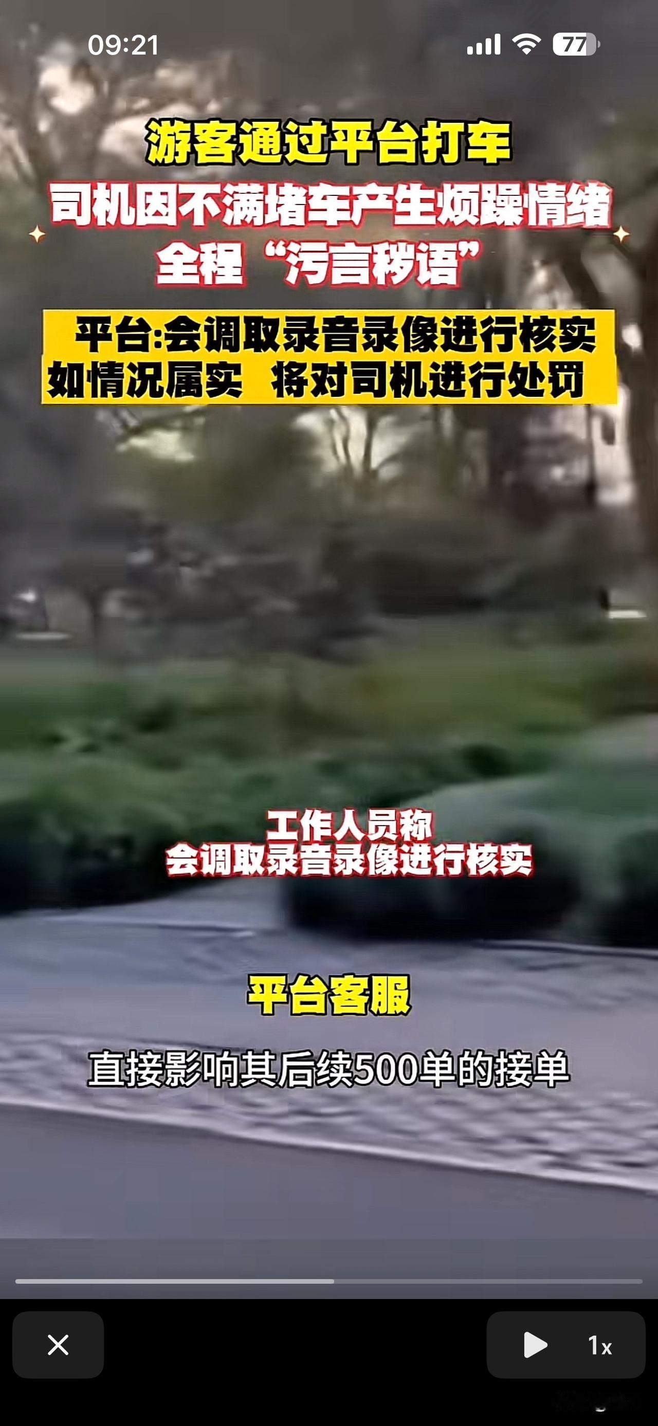 近期某游客通过打车平台打到因堵车原因,司机满嘴脏话。平台:会调取录音录像,如情况属实,会进行严厉处罚。针对此事,大家出门在外要注意安全!
