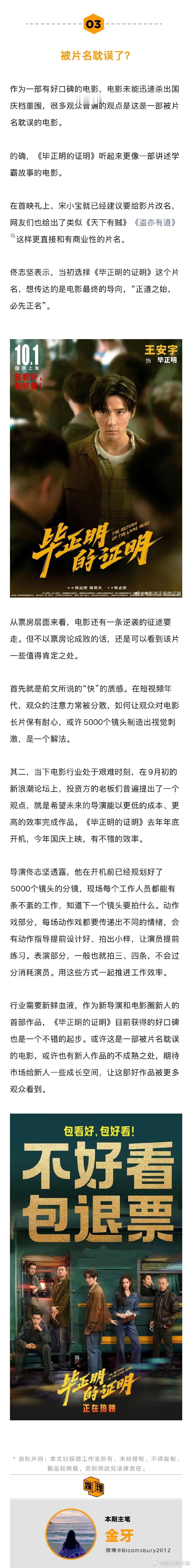 导演说选王安宇是选对人了 毕正明的导演谈王安宇的破碎感 谈及王安宇,《毕正明的证明》导演佟志坚直言选对人了,还理解了王安宇的“破碎感”: “拍他出场的那个镜头,我说怎么拍都觉得他有点眼泪汪汪的感觉,我还让他过来研究一下。后来他说,我这两个眼角是往下的,会有一些无辜感。他很适合演那种委屈巴巴的感觉,感觉他一委屈了你就可以原谅他…”娱理独家↓