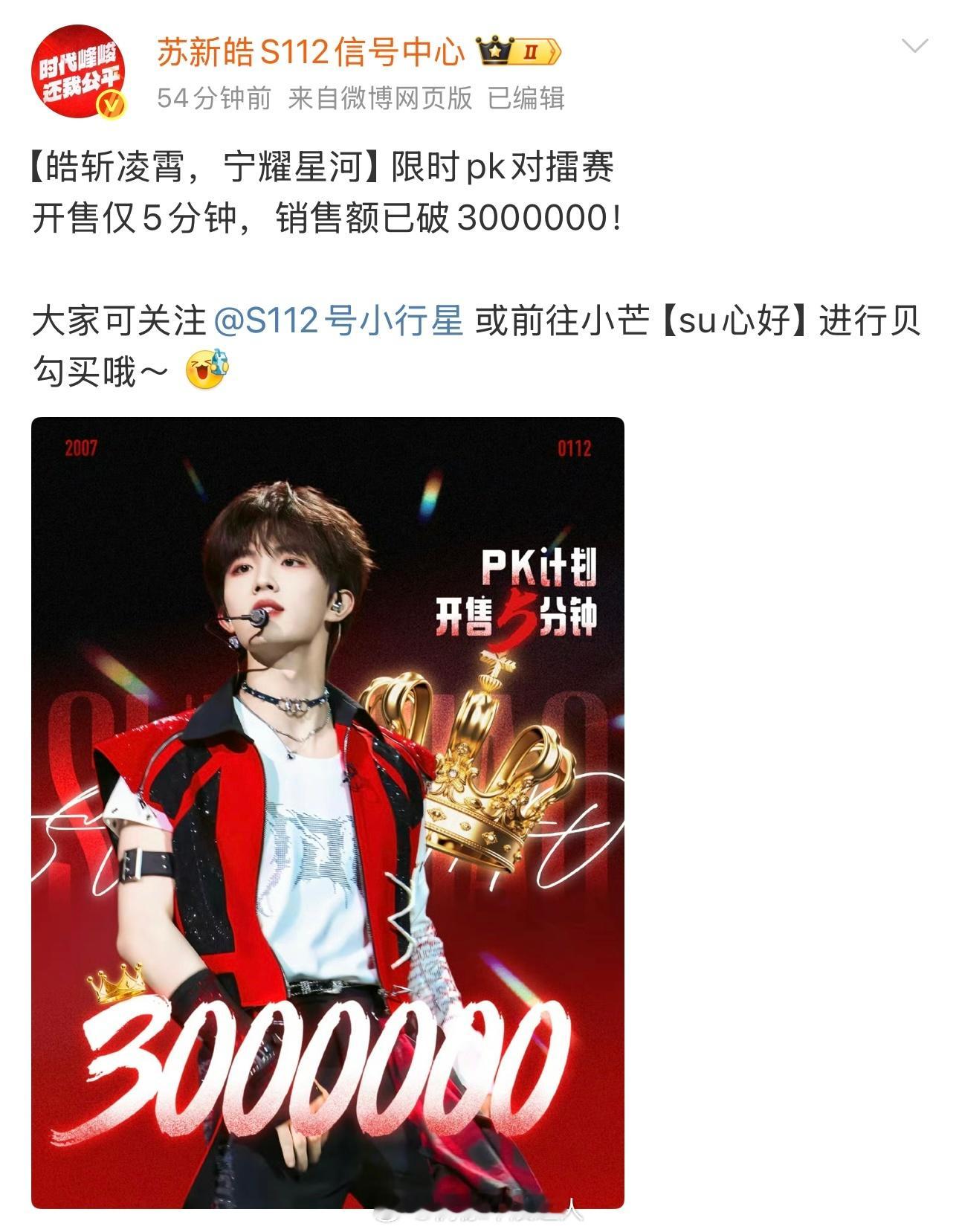 苏新皓PK30秒100w、5分钟300w10分钟400w、20分钟500w苏