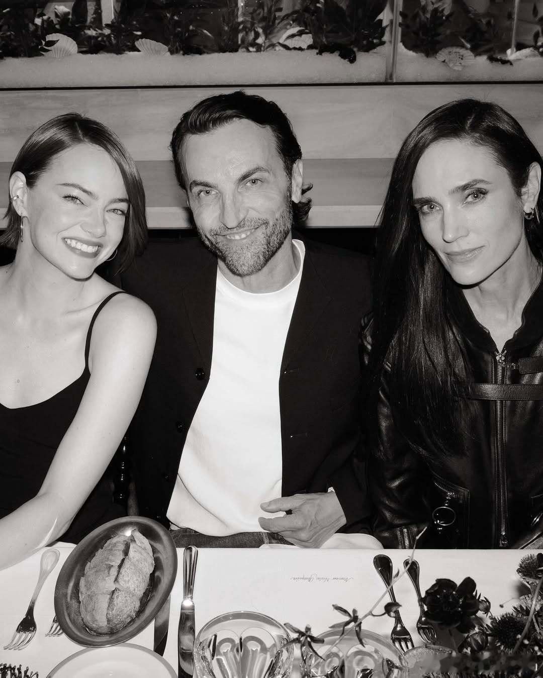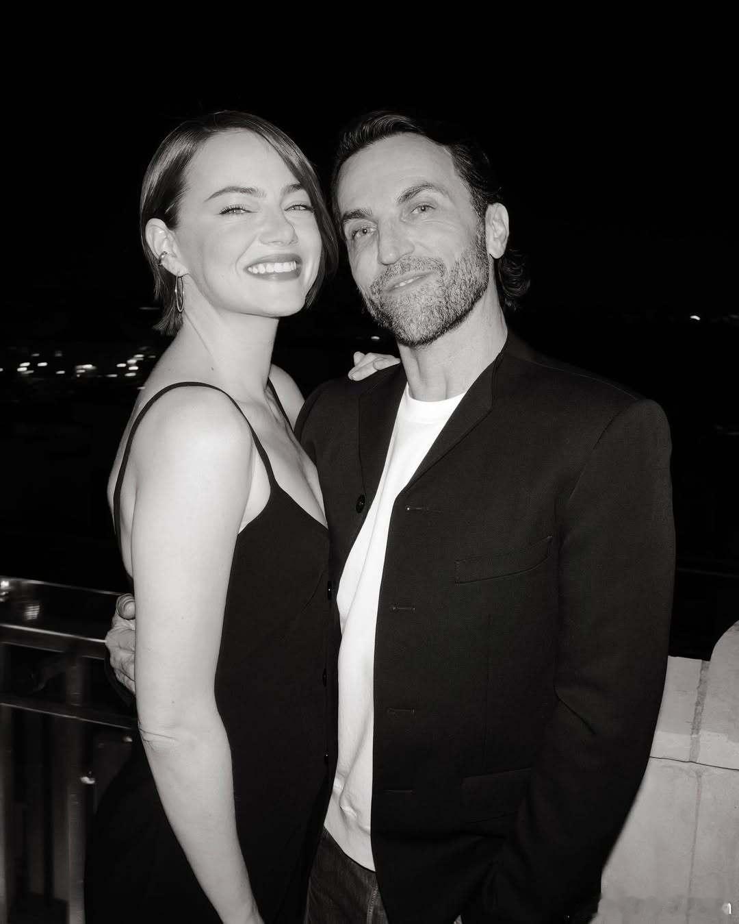 emma stone艾玛斯通之前在巴黎时装周期间出席Louis Vuitton举办的秀后派对,与设计总监Nicolas Ghesquiere的合影