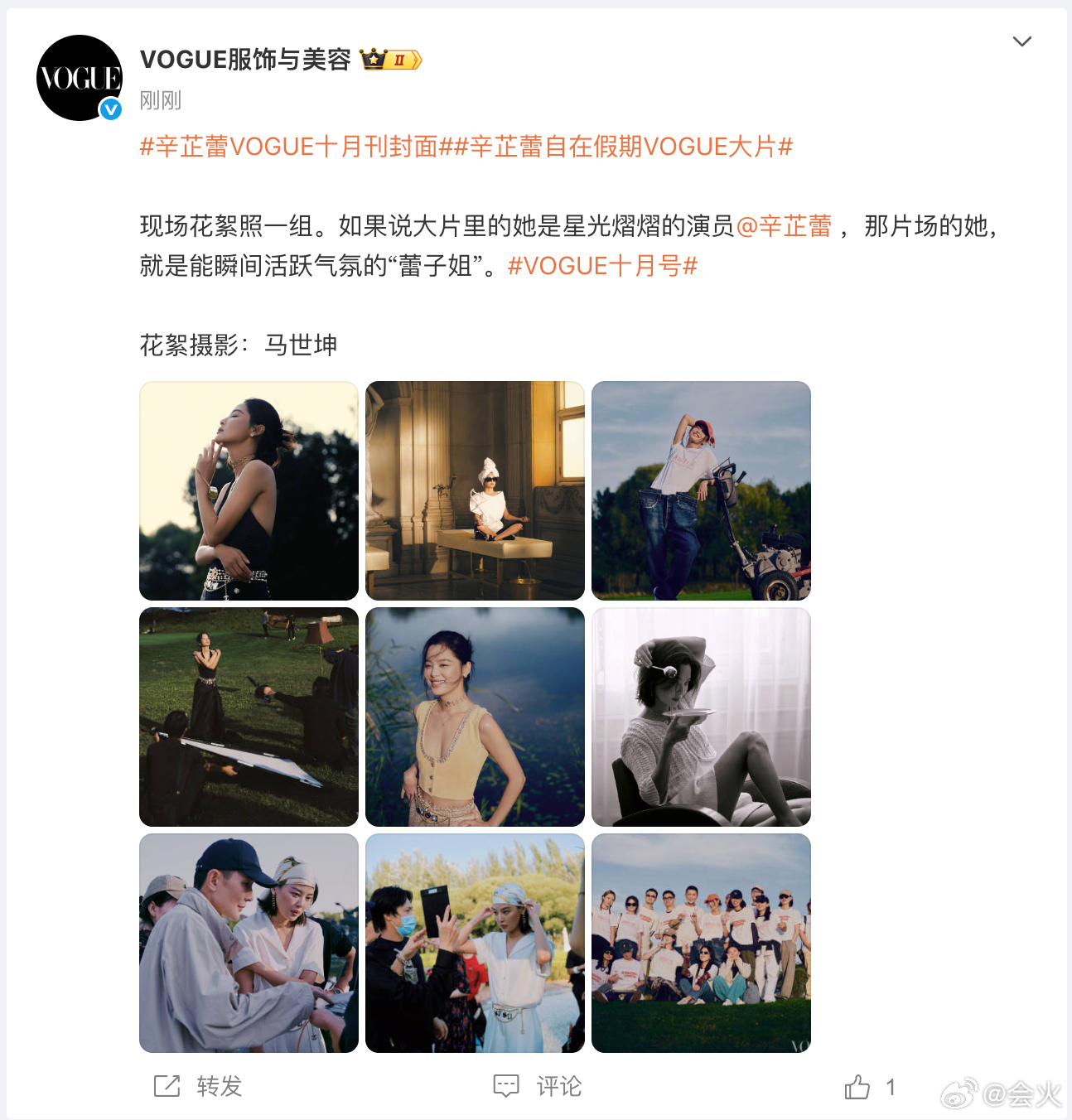 哇,vogue发了辛芷蕾十月刊封面的现场花絮照[鼓掌]