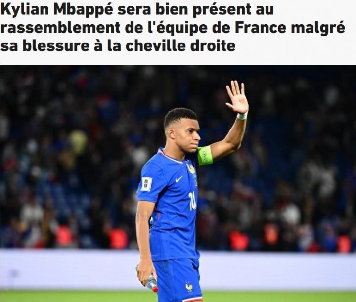 带伤出战?队报:姆巴佩本轮西甲扭伤脚踝,但仍坚持去法国队报到