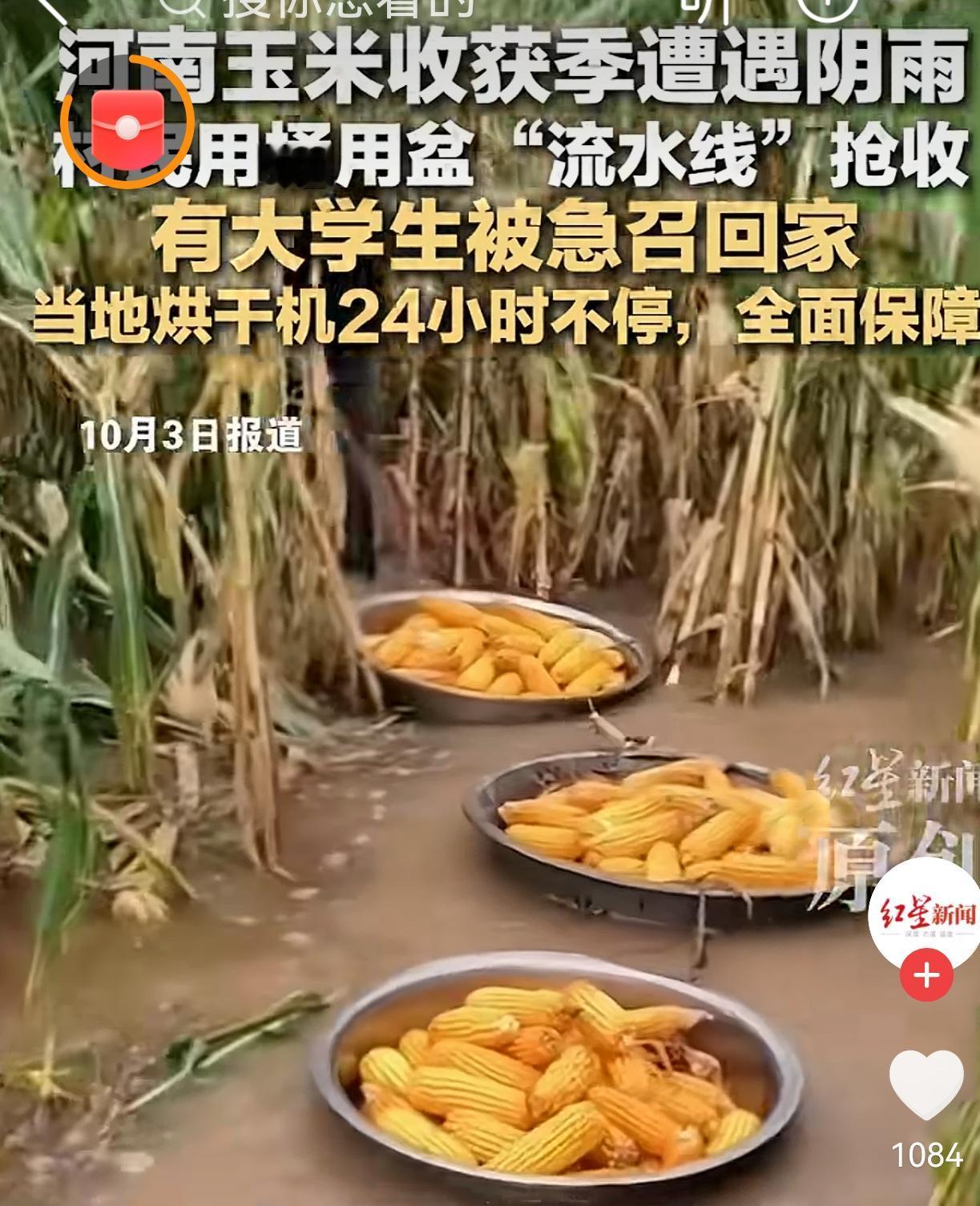 连阴雨天河南农民生活。从9月底至10月15日连续20日阴雨天,正值河南秋收日,进不了田收不了玉米,收到玉米未能及时烘干发了霉,出了芽,有些地方粮食烘干点也要等待,过去粮食靠日晒。不是粮食收购加工点,谁专门去建烘干机,关键还很少!农民难!靠天难!不靠天,旱时浇水无钱难!不管何时何地都要多多关爱农民,心系农业,服务农村!祈盼太阳出,天放晴,农民眼泪不再流[祈祷]