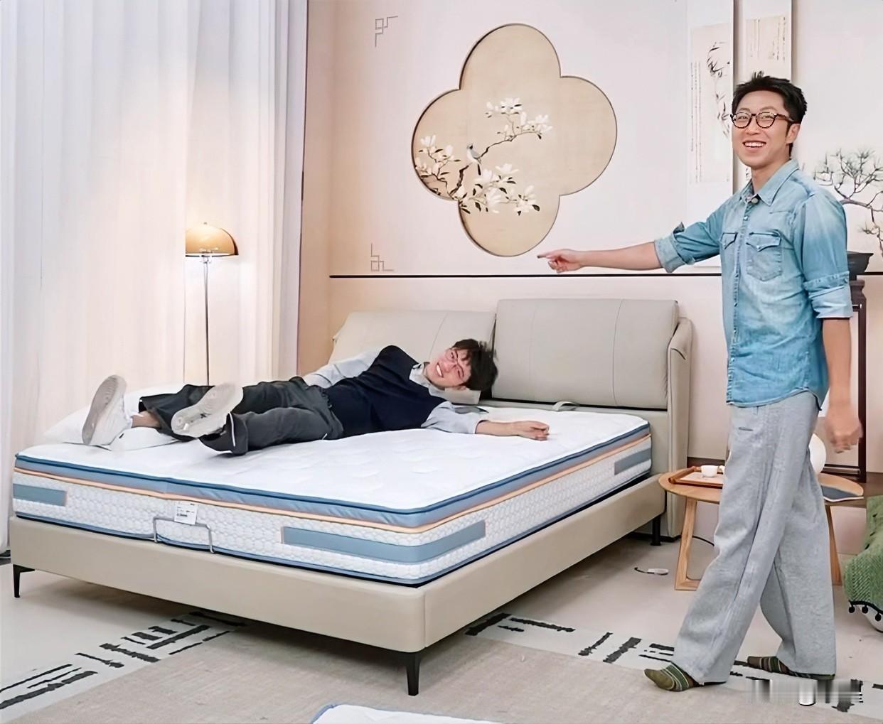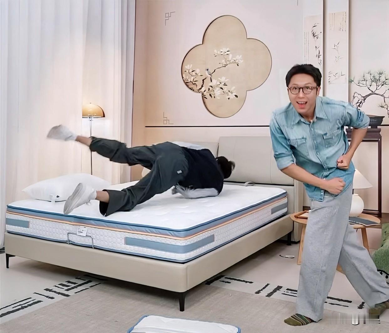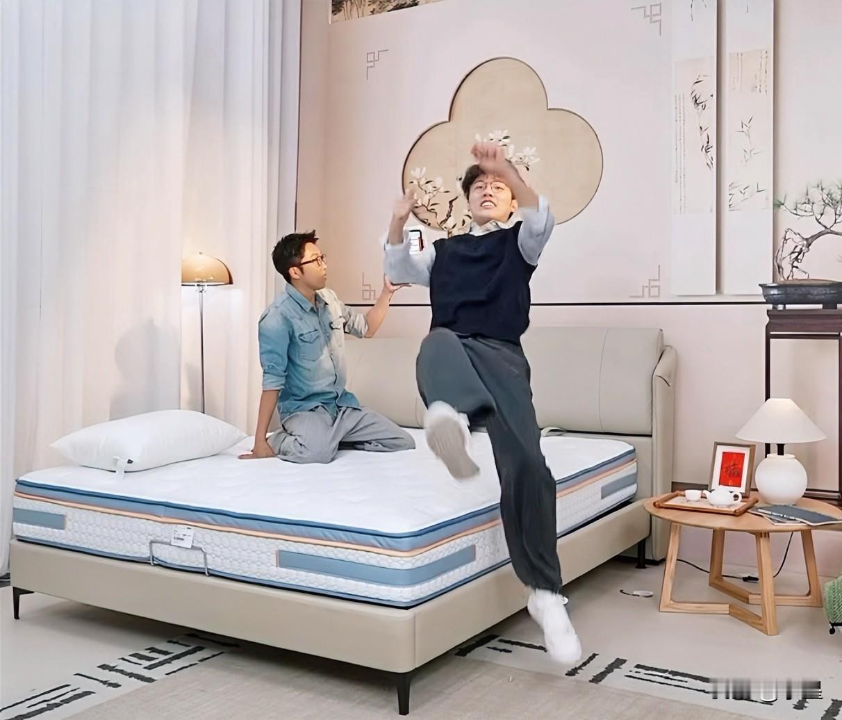 鹏鹏和汉森又在直播间玩嗨了 为了试验床垫弹性,两人演了个小剧场 剧情大概是兄弟不