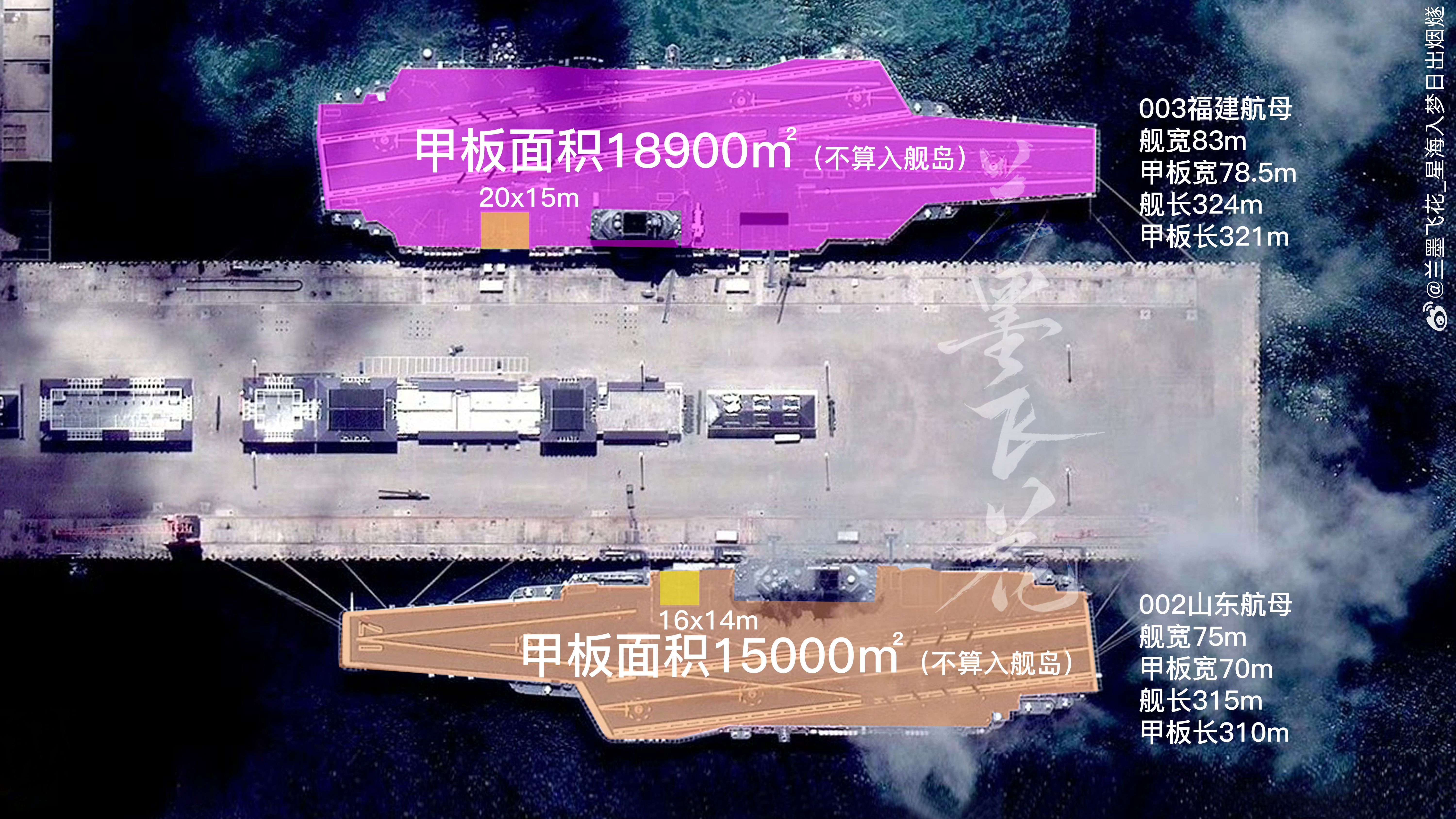以色列商业卫星拍摄的,前几日“福建舰”与“山东舰”同框停放的清晰画面,可以看到两艘航母甲板的尺寸差距是真的大!(图2是“”的推测数据)烽火问鼎计划