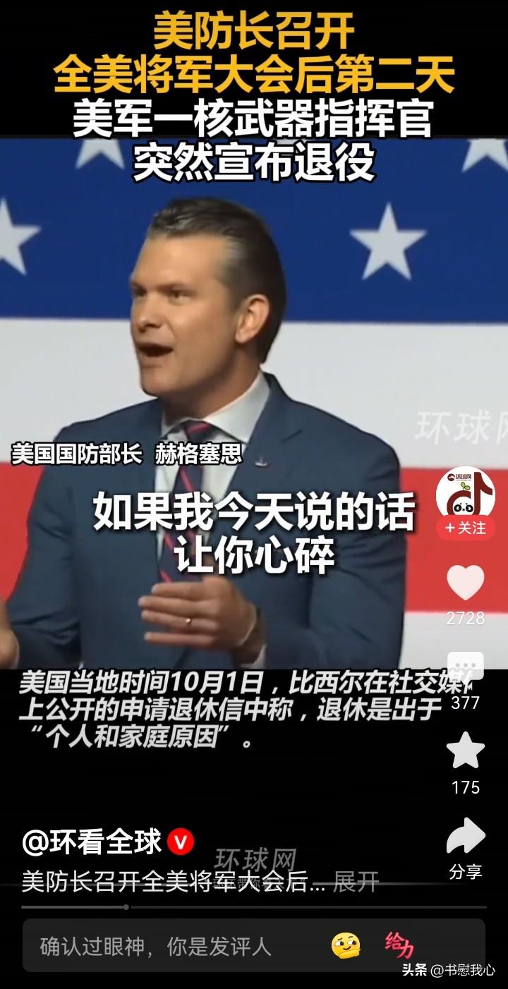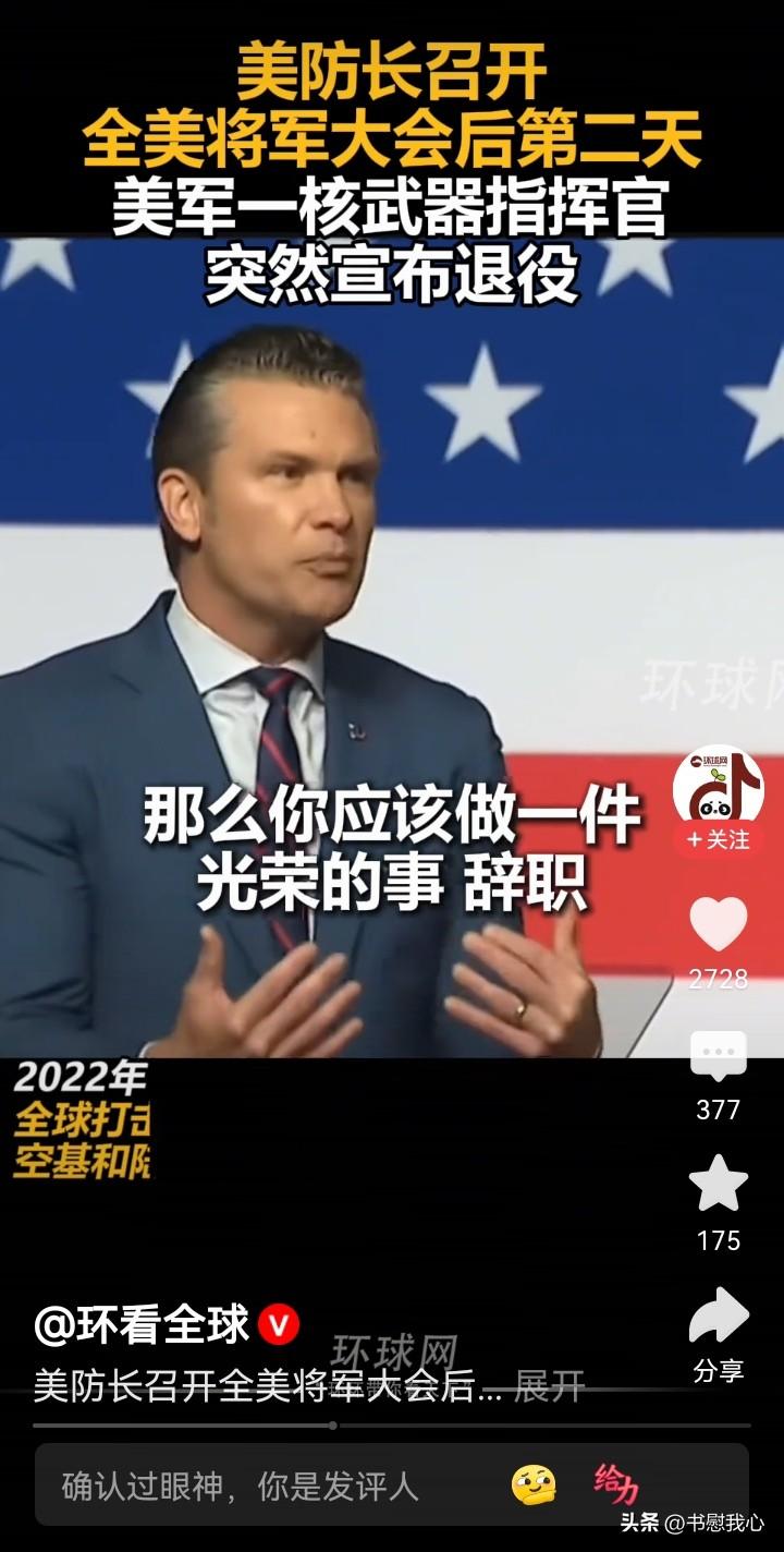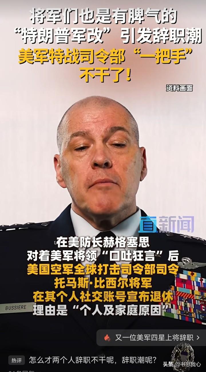 45位的美军上将,在战争部长和总统讲话后,就辞了2个!后续还有吗?也谈特朗普的“