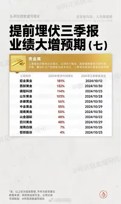 特点: 受益于金价高位运行,相关企业盈利预期强劲,三季报披露多在10月中下旬。
