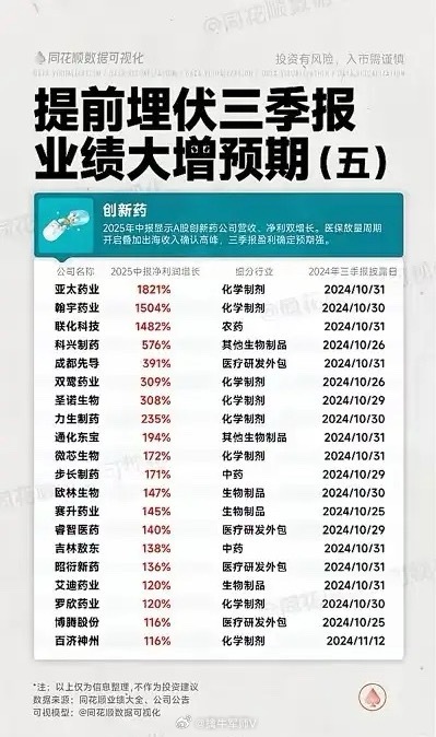 特点: 多个细分领域创新药公司业绩大幅增长,三季报披露多在10月底至11月中旬。