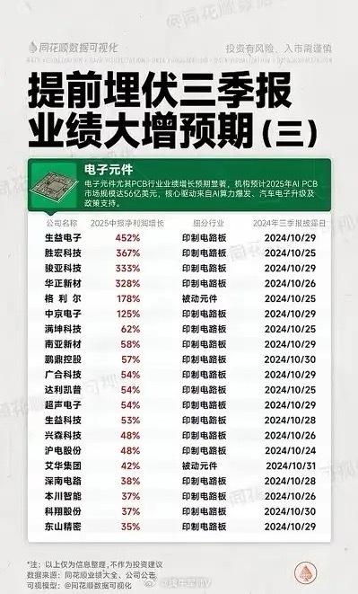 特点: 多家PCB企业增速超300%,三季报披露多集中在10月下旬。