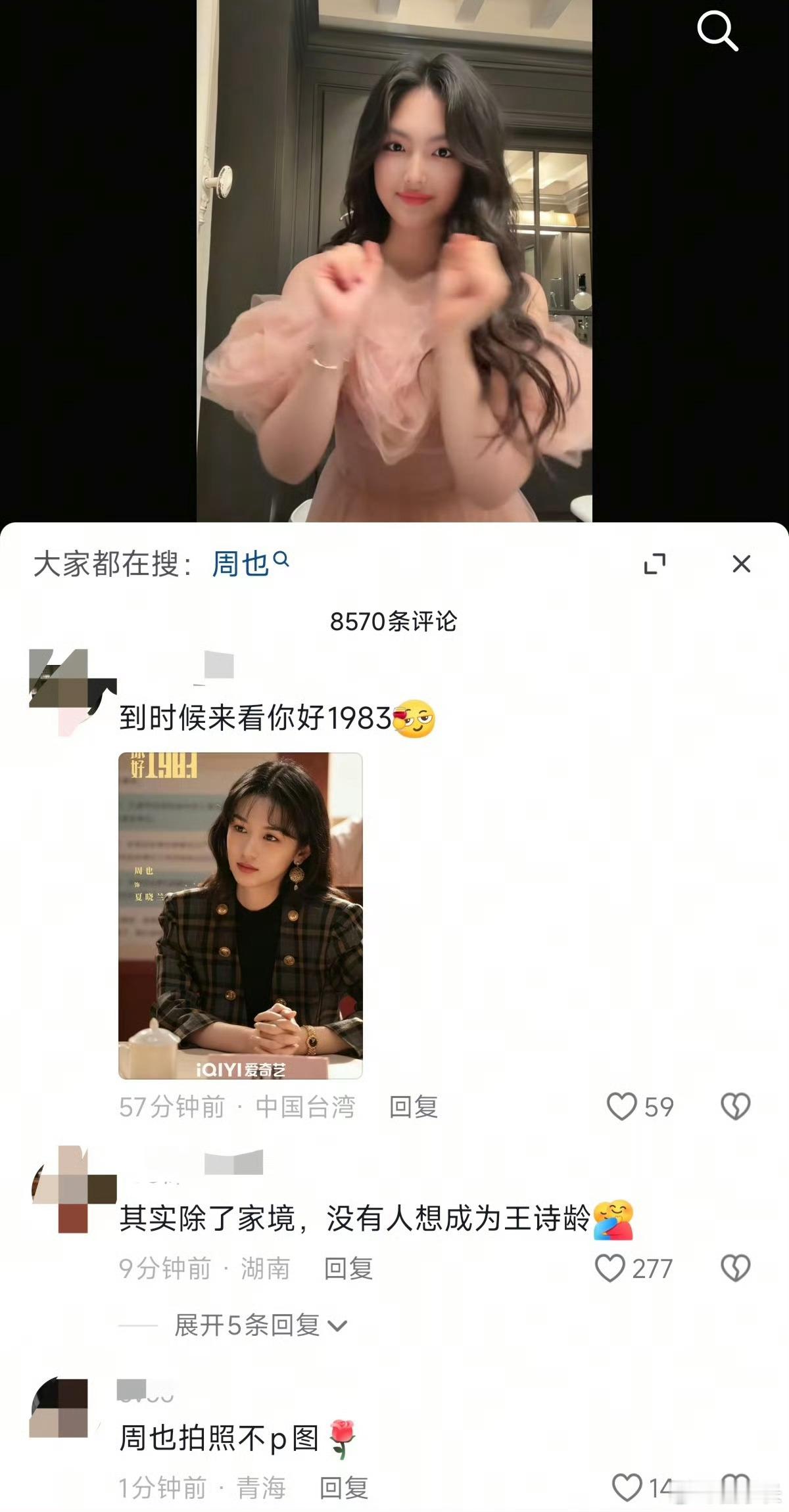 李湘 周也没想到李湘一个小失误闹这么大一条乌龙,被网友发现后也没有任何解释,周也就这么莫名其妙因为王诗龄的一句不喜欢上了热搜。周也这么美,压根不缺人喜欢