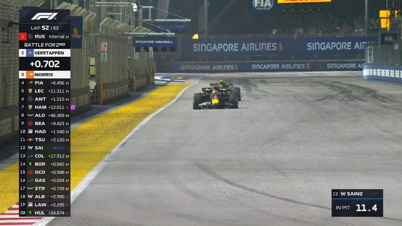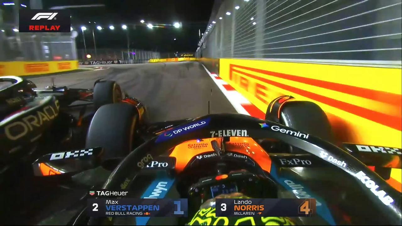 冠军是拉塞尔的!剩下的亮点看P2之争。维斯塔潘跟诺里斯相差在1秒以内。 争斗已经开始,诺里斯试探半步,维斯塔潘关上大门。驾驶技术在两个天才之间都不够用。