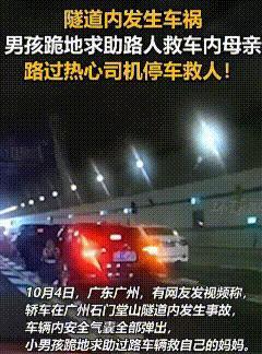 看哭了!在广东的一条隧道里,一位妈妈开车时追尾了前方车辆,安全气囊弹出,妈妈陷入昏迷。车内有一男二女三个孩子。 三个个孩子吓得大哭不止,不停地呼喊着妈妈:“妈妈醒一醒,妈妈你怎么样了。”然而,妈妈毫无声息,没有回应。 两个大一些孩子惊恐的下车,八九十的女孩拉开驾驶室的门,摇晃着妈妈的身体。 十岁左右的男孩跪在路边,泪流满面,双手合十,哀求路过的汽车司机:“求求你们,救救我妈妈,救救我妈妈。” 由于发生了事故,车流行进缓慢。 一辆汽车停下,女司机走到事故车旁,查看车内情况。 只见车内的妈妈身上没有伤口,已经恢复了一些意识。 男孩紧紧拉住女司机的手哀求道:“阿姨,你救救我妈妈吧。” 女司机安慰男孩:“孩子你别怕,会救你妈妈的。”接着,她连忙报警,描述了车内妈妈的状况,并询问警察能否送妈妈去医院。 得到警察许可后,女司机和其他停车的司机一起将妈妈从车里扶出,还有人扶起哭到腿软的男孩,把他们送上了女司机的车。 女司机将母子四人送到医院,警察赶到医院后,女司机便离开了。 经过医生诊断,妈妈只是有些脑震荡,休息一段时间就会好。 看到跪着哭泣的男孩,忍不住的心疼,他很怕妈妈就这样离开他们。 这段经历对三个孩子而言,是一辈子都抹不去的印记。女司机伸出的那双手,更是一份沉甸甸的温暖,会深深镌刻在他们的心底。 来源:环球网