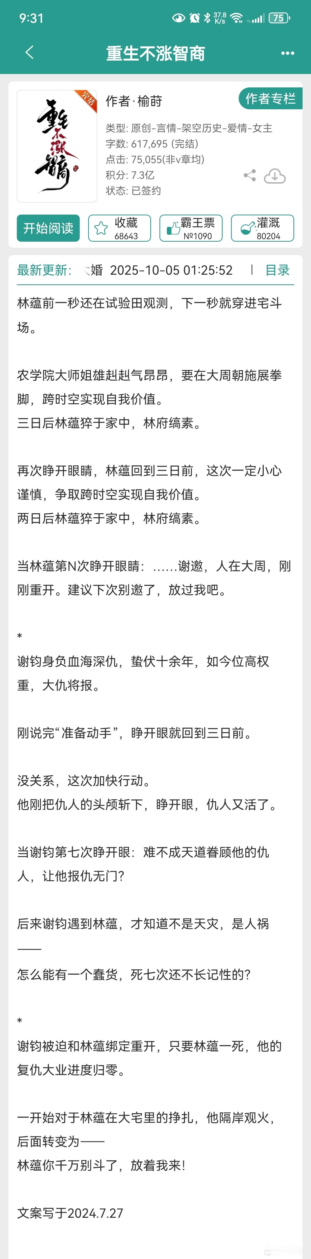 好看的,设定蛮有意思的,男主重生死了就会重回七天前,而且绑定了男主,男主也会重回,女主真是一个善良可爱直率的小宝贝,而且勇敢又有大义,好喜欢她啊,一开始男主让表哥去接近女主,最后他俩定亲了哈哈哈,酸死男主了,各种搞事破坏,总而言之配角也蛮可爱的,好看言情小说推荐推文小说推荐