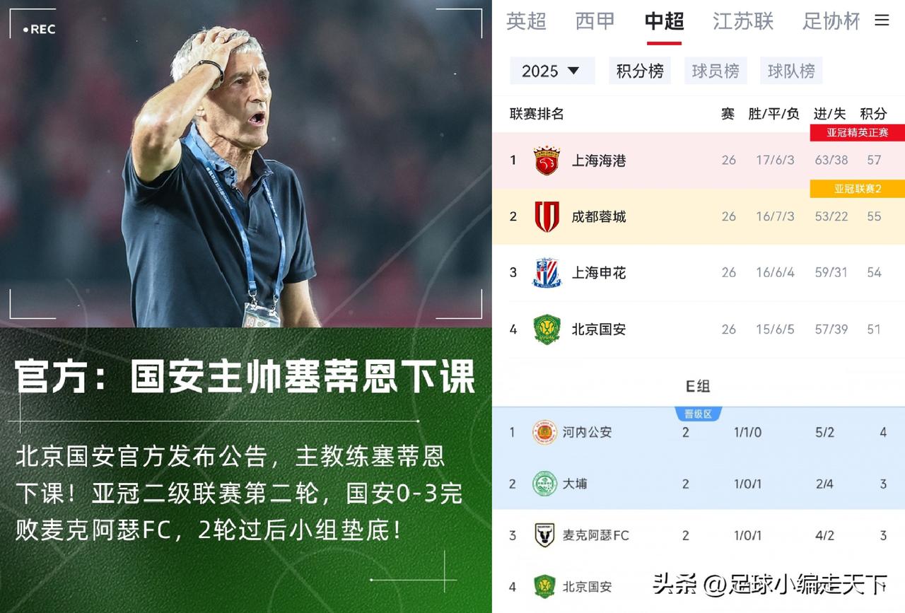 重大消息,国安主帅赛蒂恩下课了!只带队打了32场正式比赛就“跑路”了。 感觉这塞