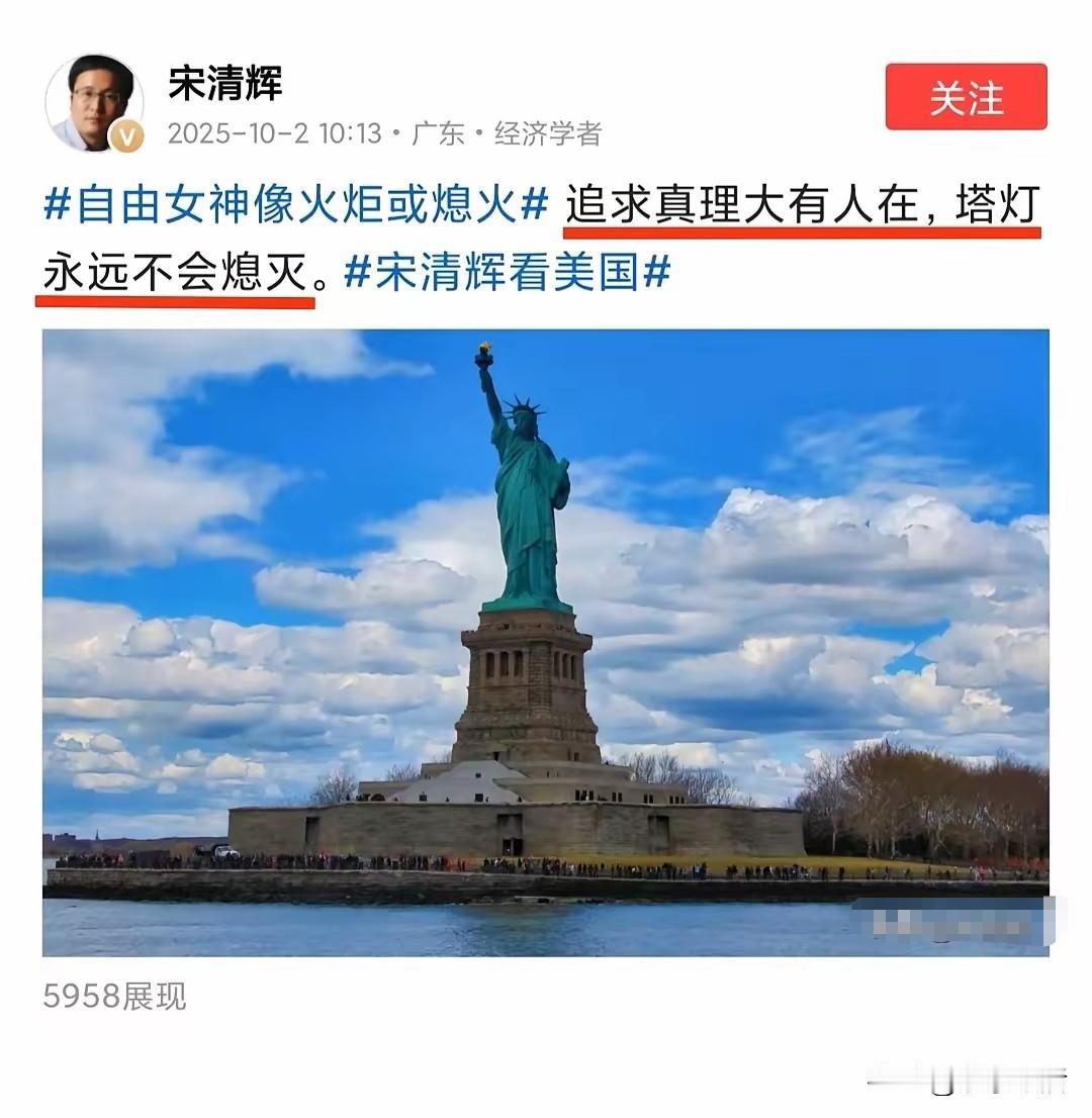 宋清辉先生发文虽短,但立场已现。看来,在他的心中,漂亮国是追求真理人向往的地方,