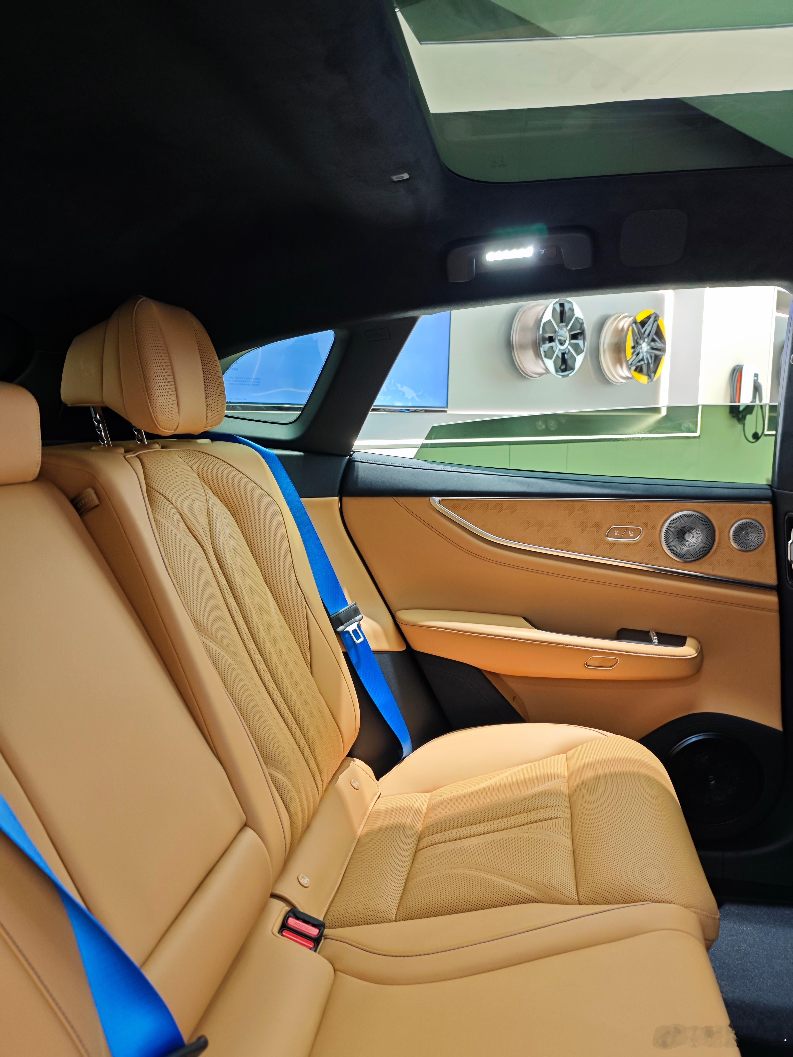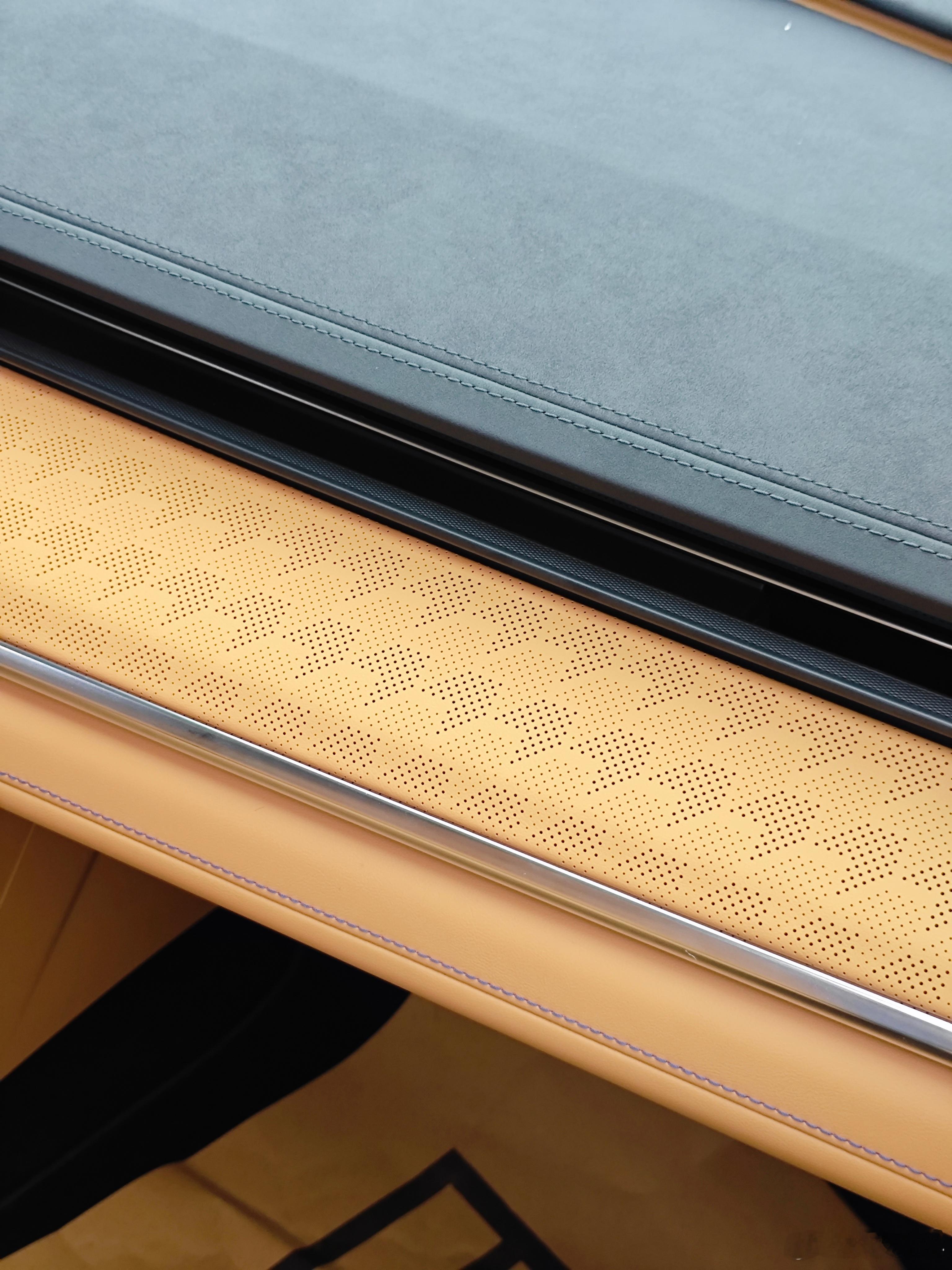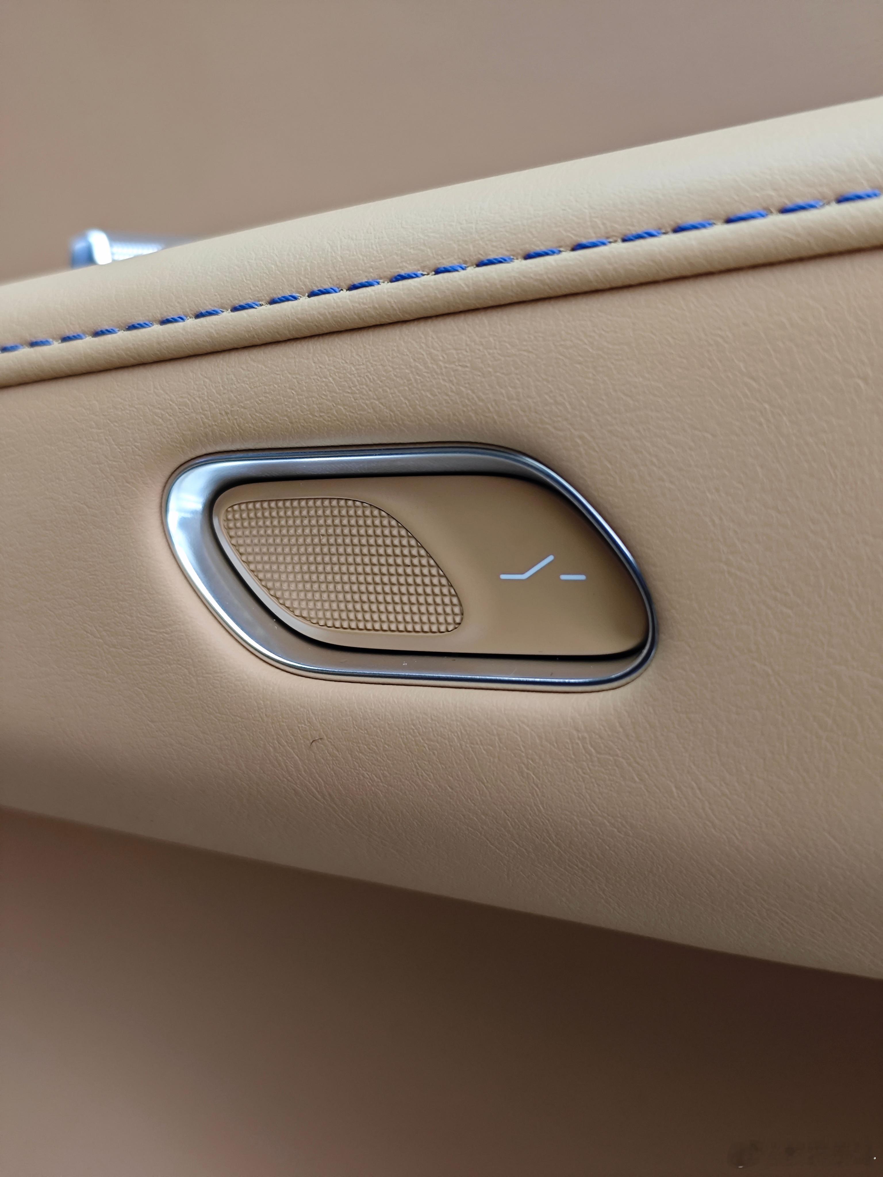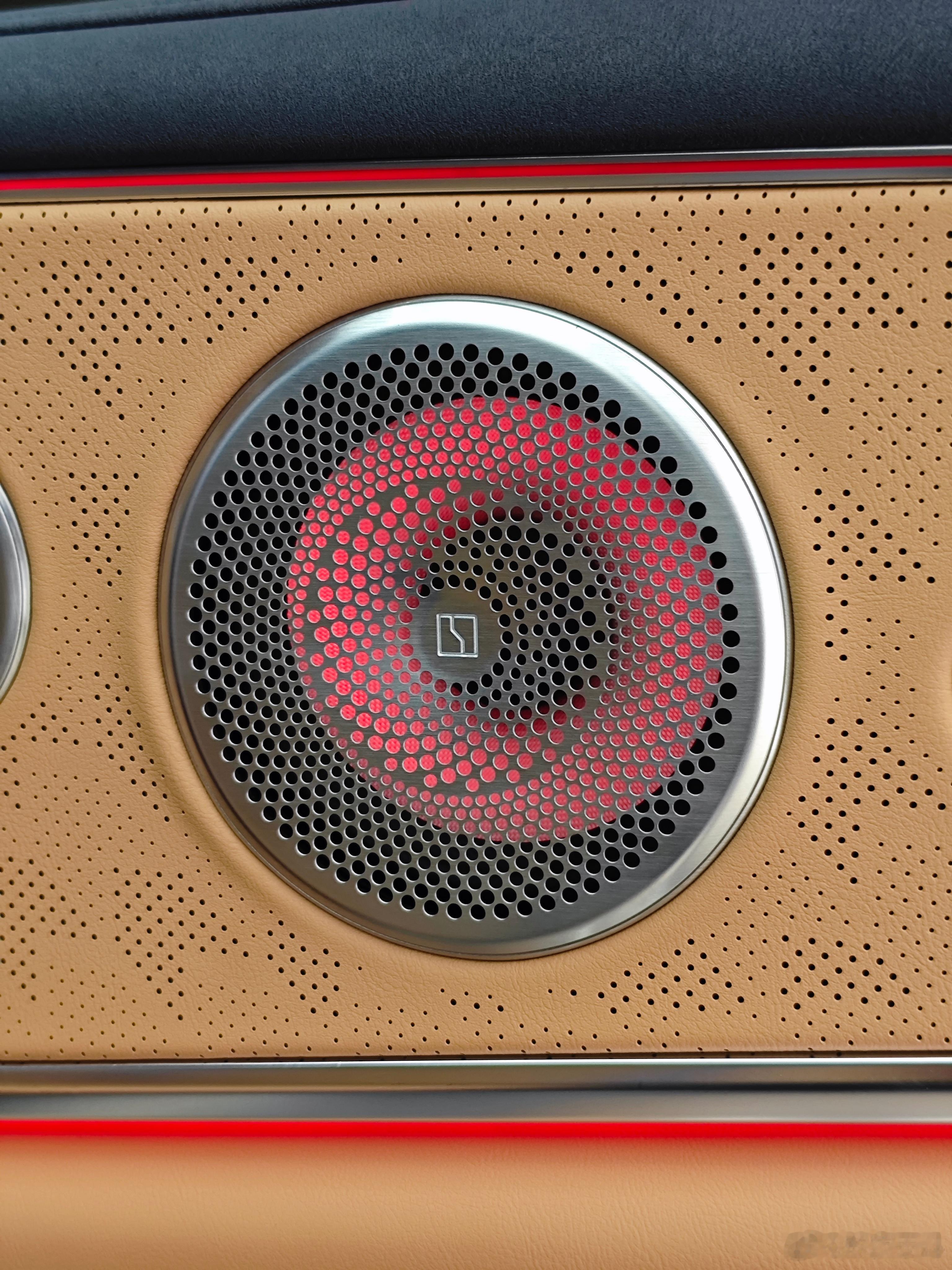 内饰变化还是比较多,仿麂皮+皮革+金属+漫反射氛围灯,门板上的扬声器罩都变成圆形了,向9X看齐,大云现在是不是比较喜欢圆形[doge]