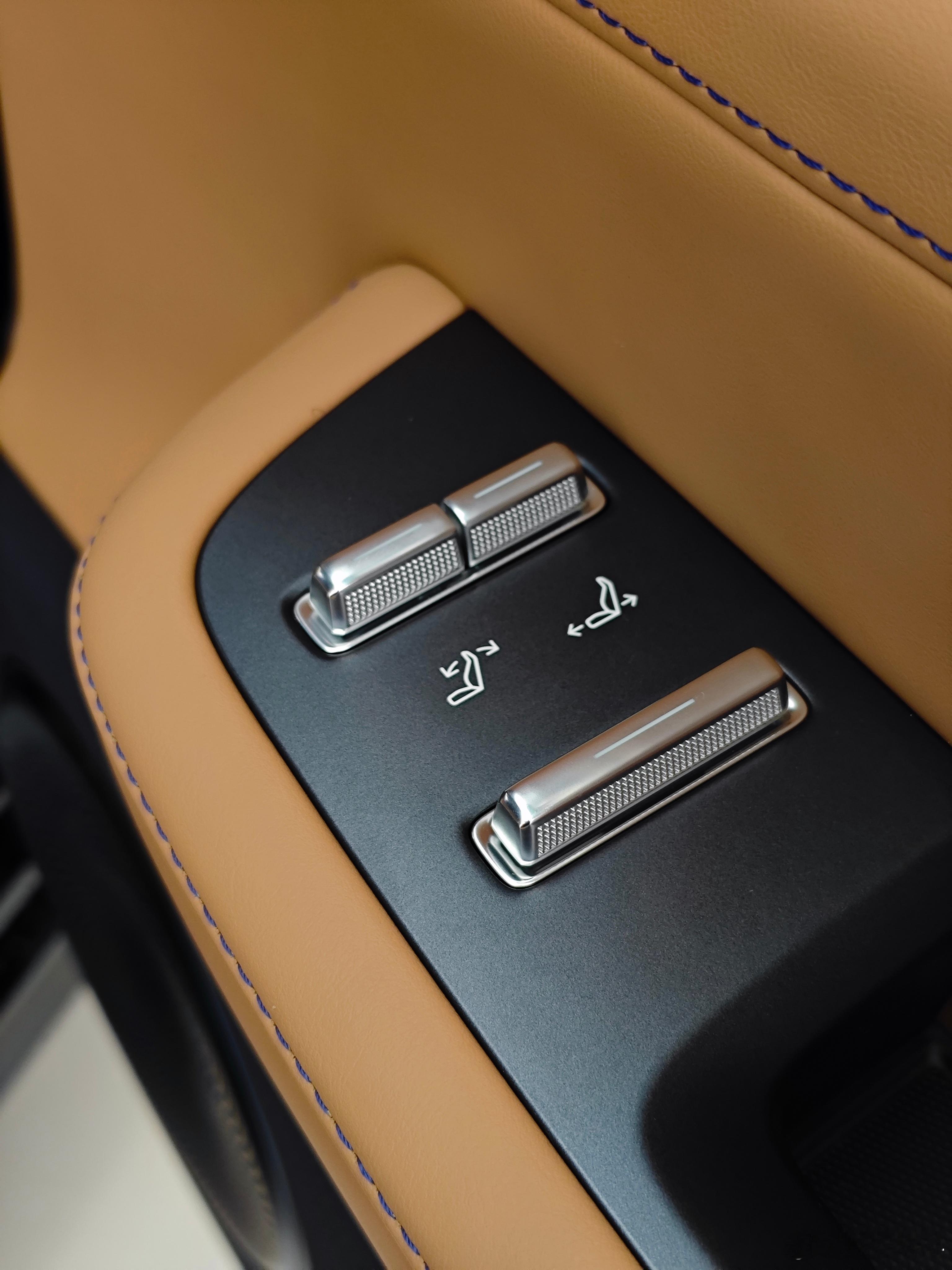 座椅调整按钮也放在了门板上,更直观,不易按错,金属色巴黎钉也更有奢华感。