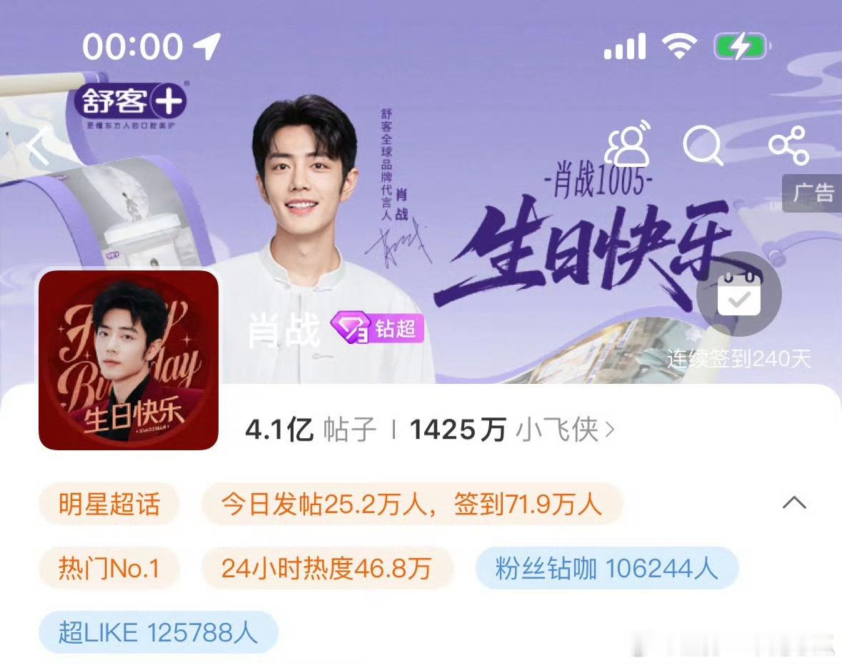 肖战今年生日,超话发帖人数25万+,签到71.9万,均破去年记录,太牛了👍
