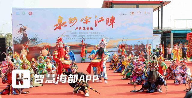 10月1日下午,作为“闽南文化戏剧周”重点活动,全新升级的“宋江阵2.0”在丰泽区蟳埔渔人码头精彩上演,据介绍,此次演出采用“固定点展示+行进式互动”双模式,还原《水浒传》布兵列阵的千年智慧,呈现十几种宋江阵经典阵法,重现泉州“棍棒手扑,妙绝天下”的民俗风采。同时,演出融入蟳埔簪花围民俗元素,演员造型兼具水浒英雄的英武与闽南文化的雅致,头戴簪花围、身披水浒战甲,将闽南柔美花卉与梁山豪杰的兵器锋芒完美交融,刚柔并济的视觉冲击,不仅融入高甲戏打斗与青狮吐火等绝技,更让百年武阵升华为兼具非遗精神与美学张力的文化符号。