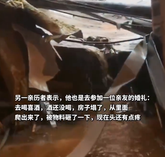 该工作人员表示,事件发生时,酒店有四户人家正在办理酒席,有一户没受到太大影响。出事后,地面全部都是积水。“我们的人全去里面救人了,有人受伤,警察也赶到了。”