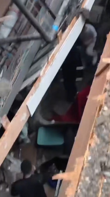 该饭店一工作人员表示,饭店内的二楼和三楼天花板都有装饰物、柱子、架子。“11点30分上完冷菜的时候(发生坍塌)。三楼房顶上的柱子和架子,还有装饰的东西全部垮下来了。”