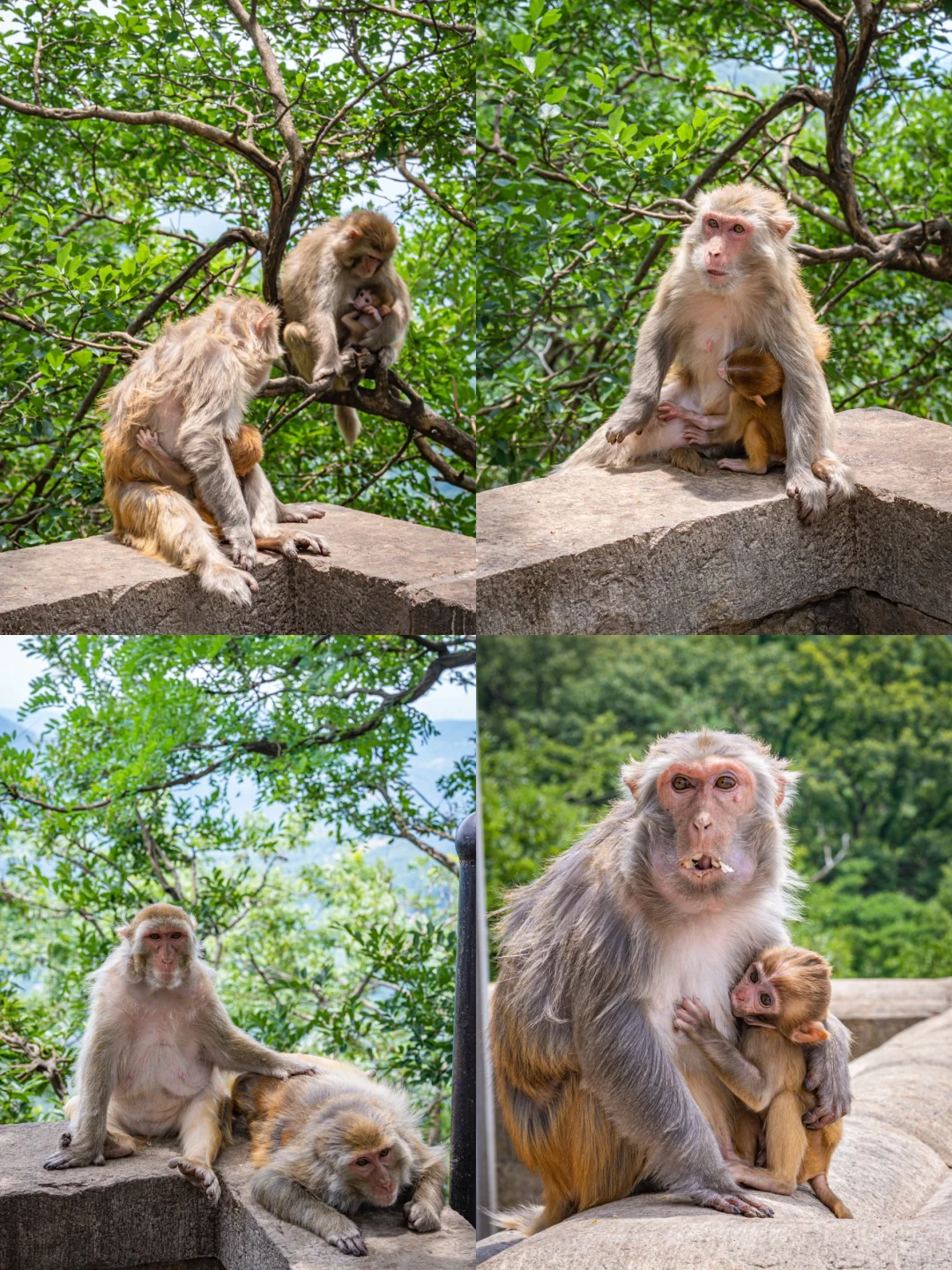 2️⃣三元宫:这一路上都能看到猴子在路边悠闲的躺着、坐着、吃着东西等等,非常松弛,三元宫有一颗古柏很有年代感