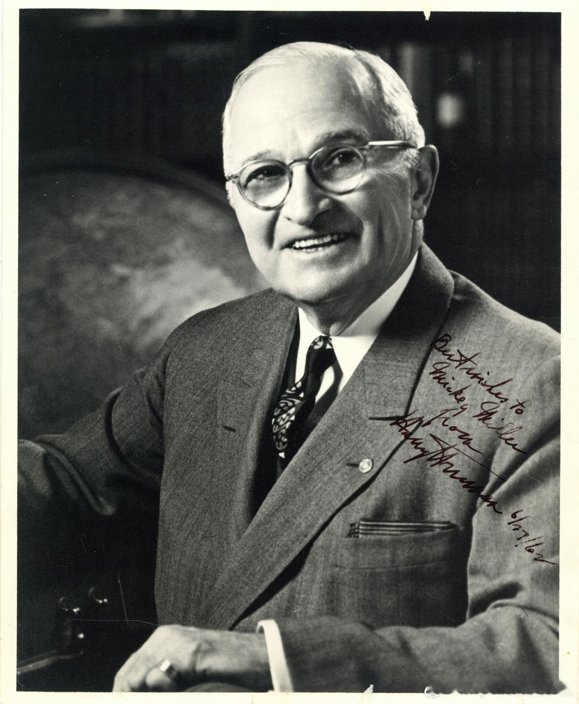 1962年6月27日美国第33任总统杜鲁门(1945年4月-1953年1月在任)签名肖像照历史影像