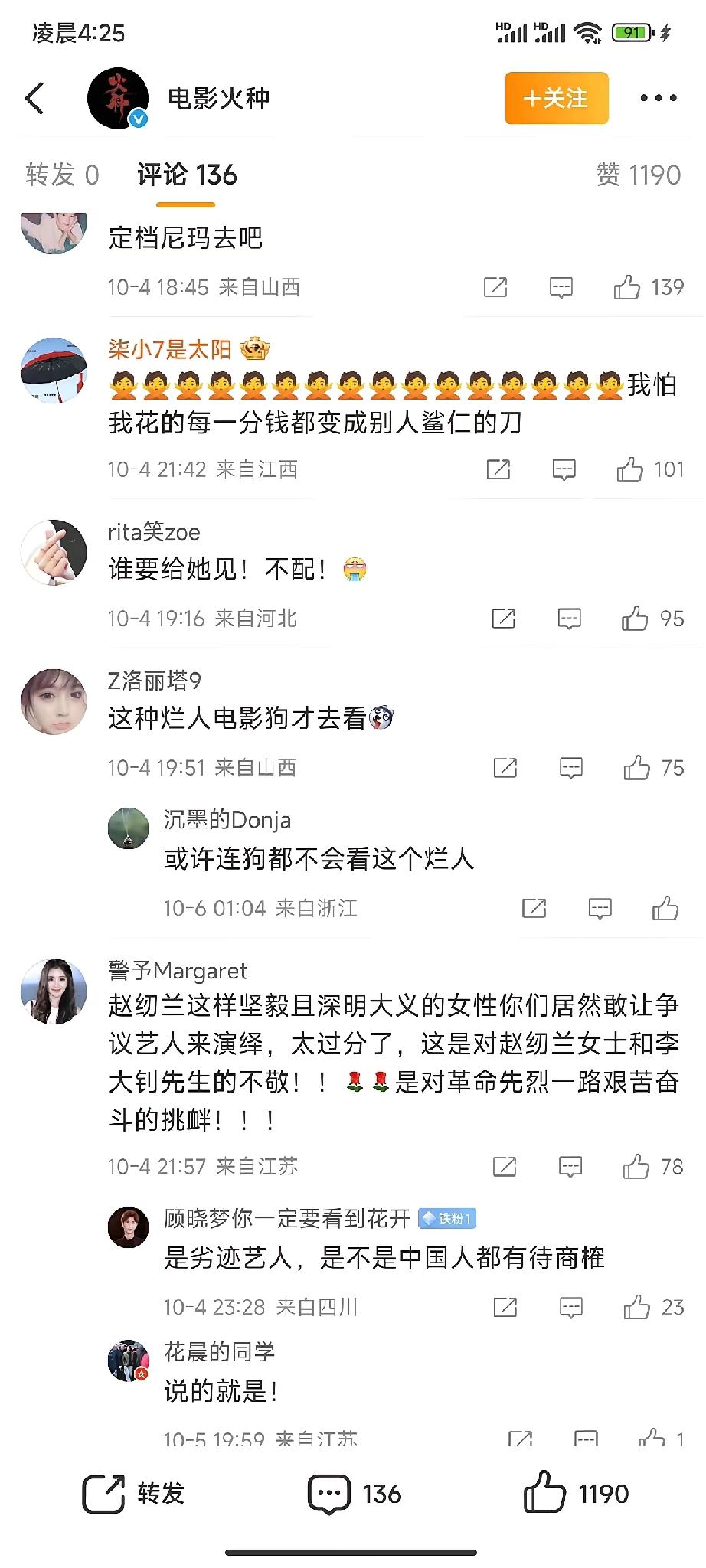 谁能想到 一部剧能被一个演员“带崩”? 火种的评论已经增加到七百多条,删不动了,围脖已经停更一天,看来有人坐不住咯! 最惨的其实不是田海蓉,而是编剧和其他演员,原本满心期待的作品,现在成了谁碰谁烫手的山芋,估计私下里都在后悔当初没把好关! 剧组至今没提换人的事,这思路实在让人费解。要知道观众的耐心就这么多,再耗下去,再好的剧本也救不活。说到底,群众的力量从不是“小题大做”,而是对作品底线的守护! 你觉得《火种》现在换人还来得及吗?要是你是剧组,会怎么解决这档子麻烦事?